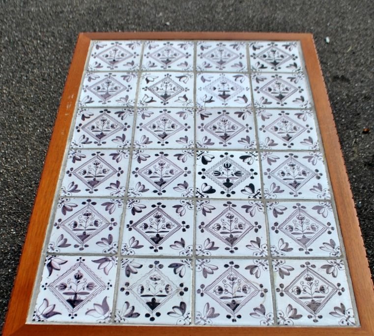 Dansk mahogni flisebord, 20. årh. Med 24 fliser fra 1700-tallet.
