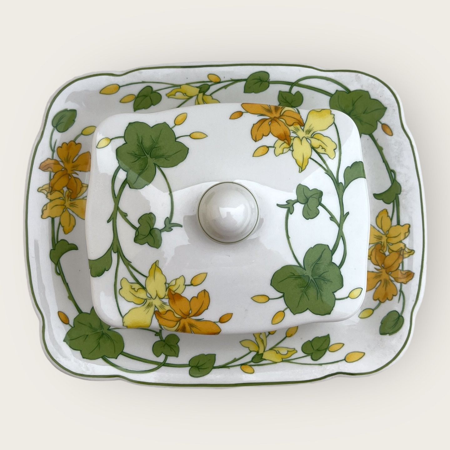 Villeroy & Boch, Geranium, Smørboks, 21cm bred, 17cm dyb, 10cm høj *Pæn stand*