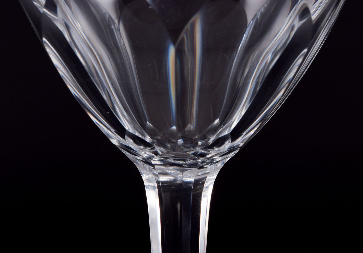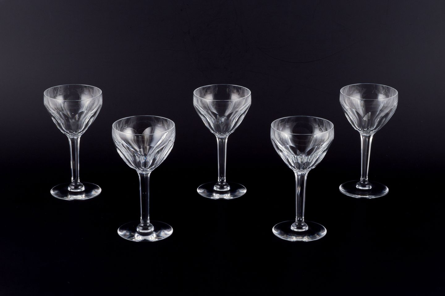 Val St. Lambert, Belgien. Et sæt på fem store Art Deco rødvinsglas i krystal.