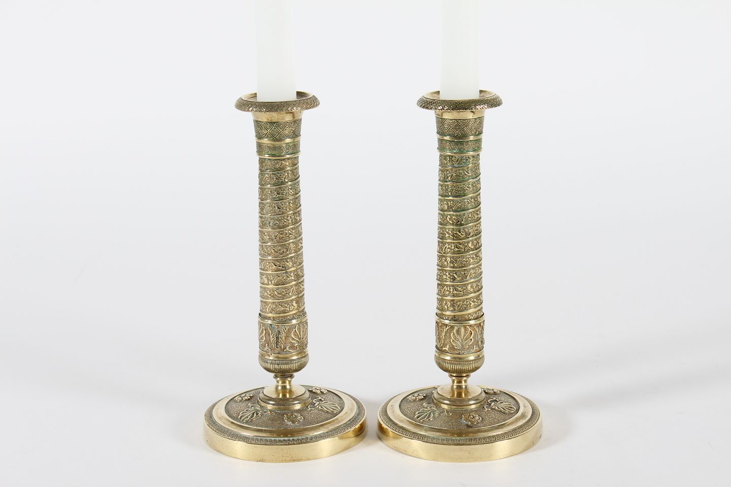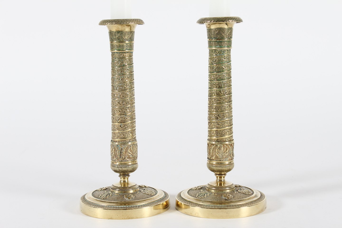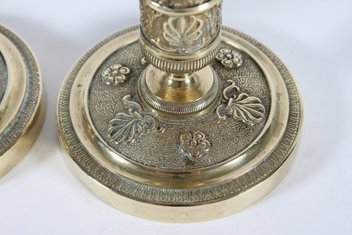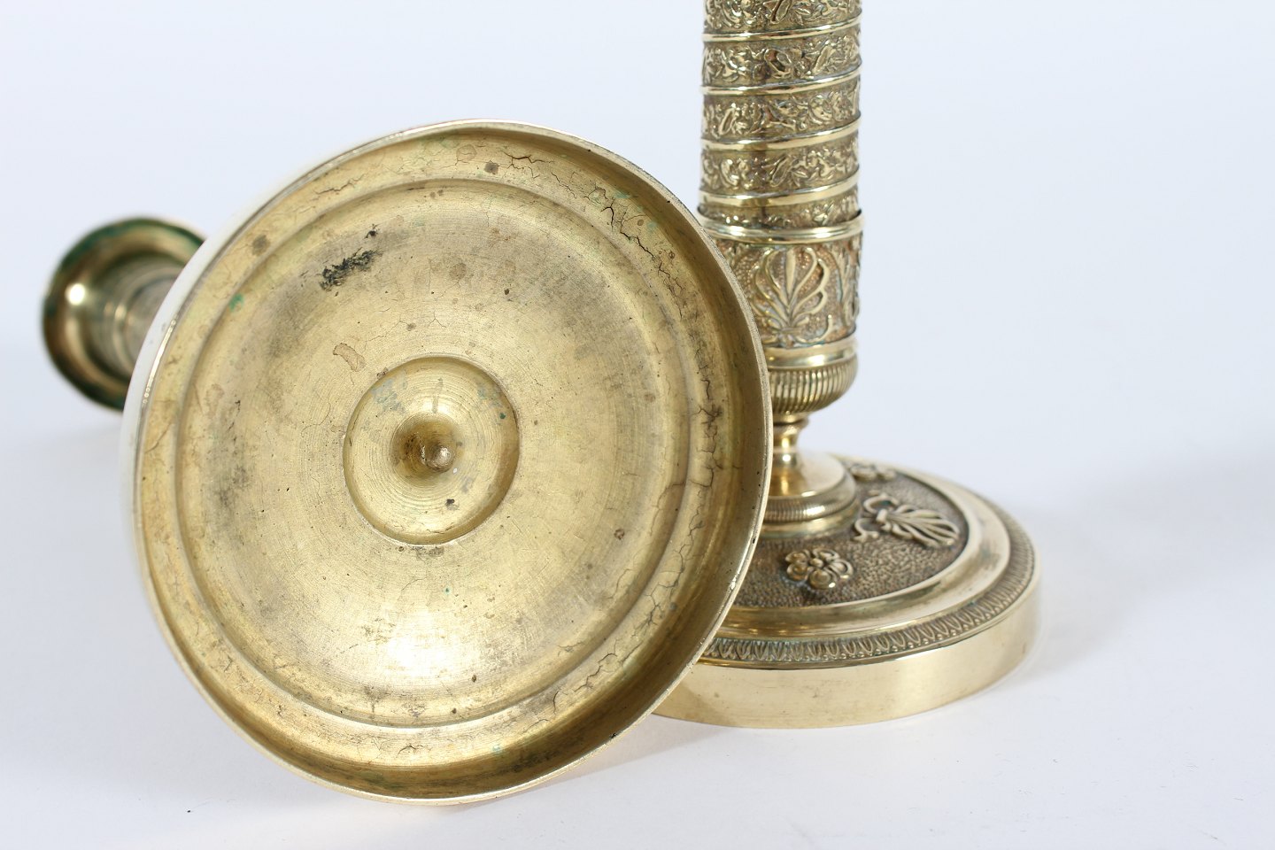 Par gamle franske messing lysestager