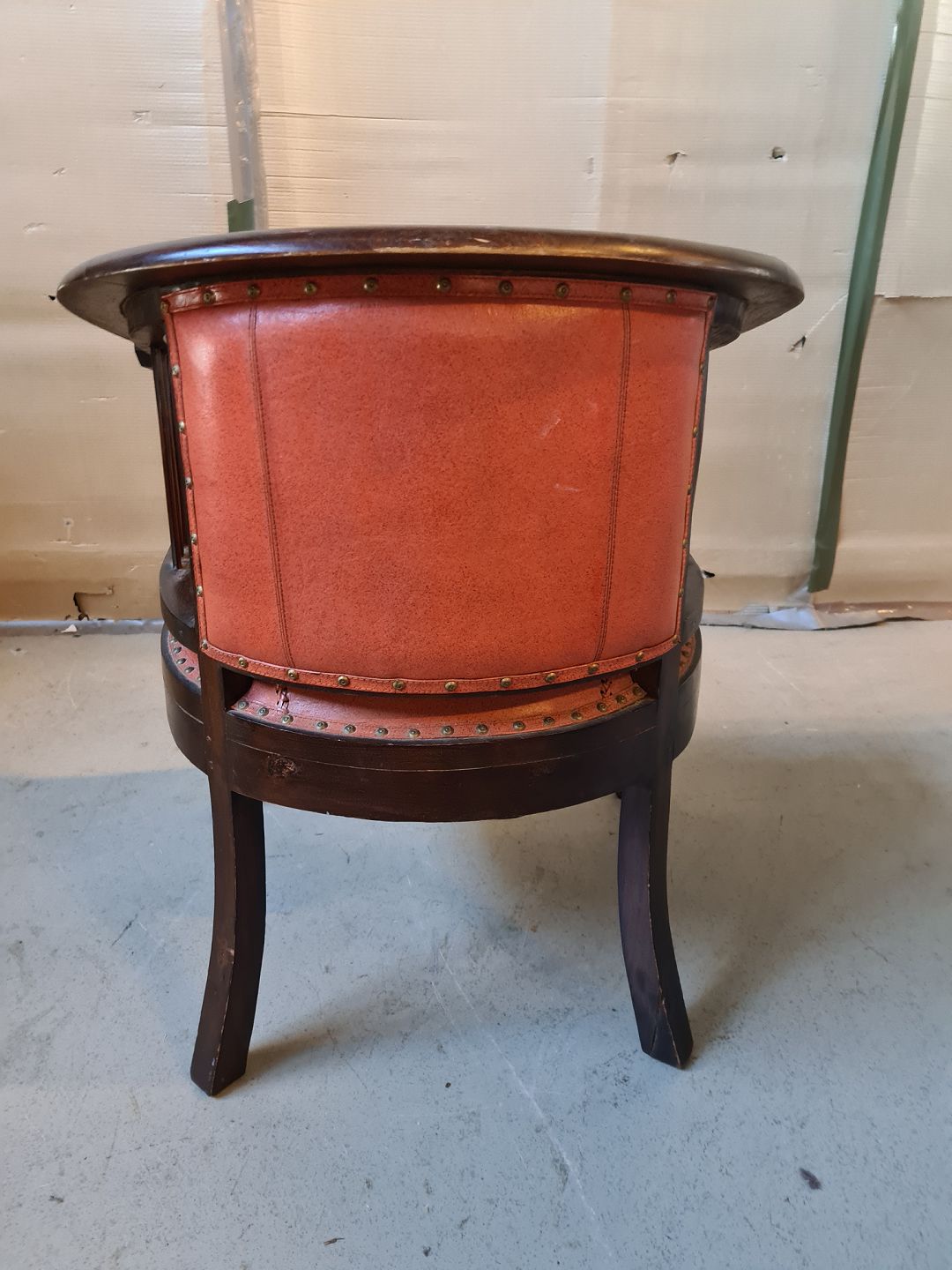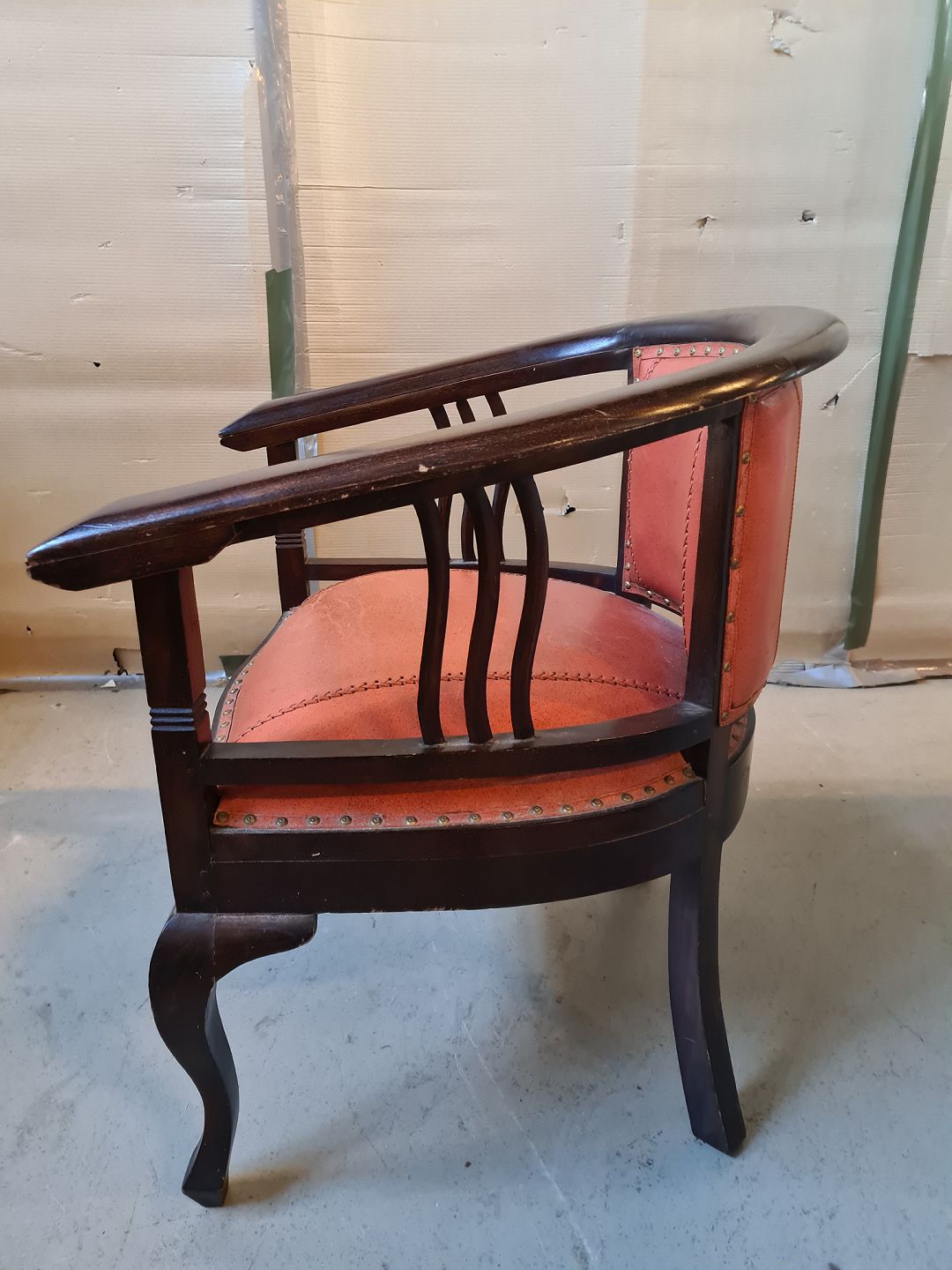 Armstol i egetræ og læderbetræk, fra 1930erne.