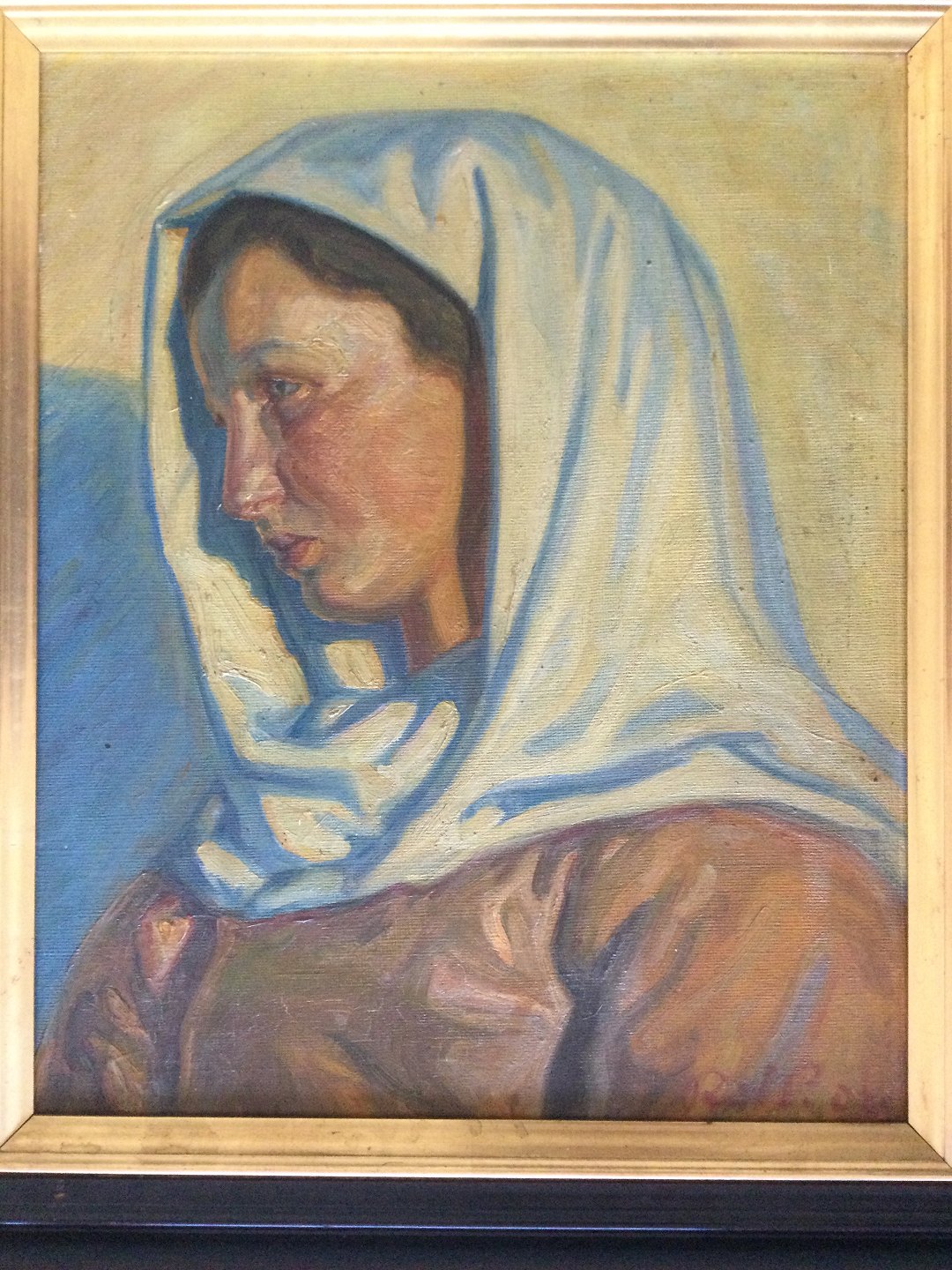 Maleri af Rud-Petersen - Kvinde med tørklæde 1901.