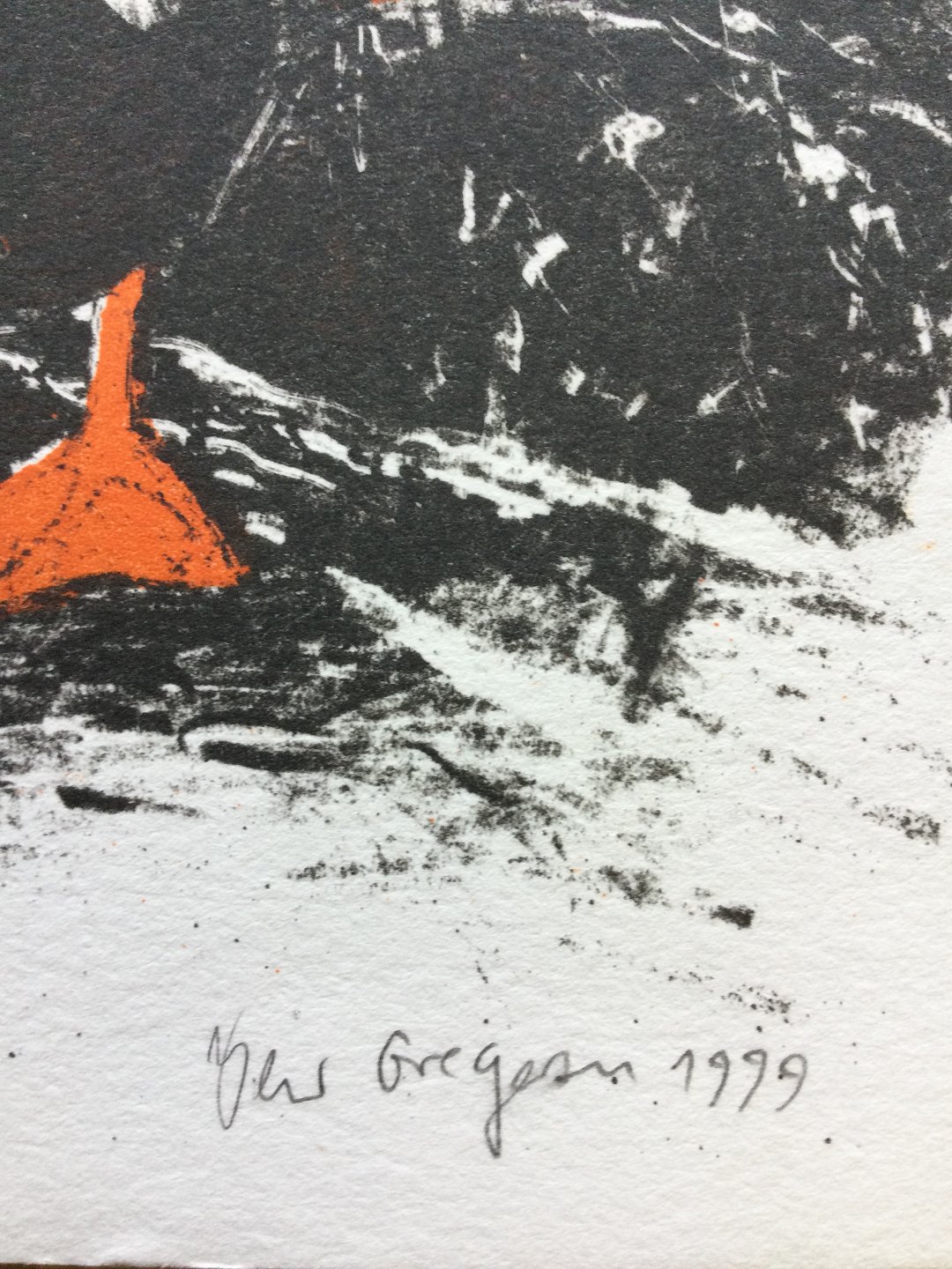 Litografi af Jens Gregersen - Tejsterner på Hirsholmene 1999.