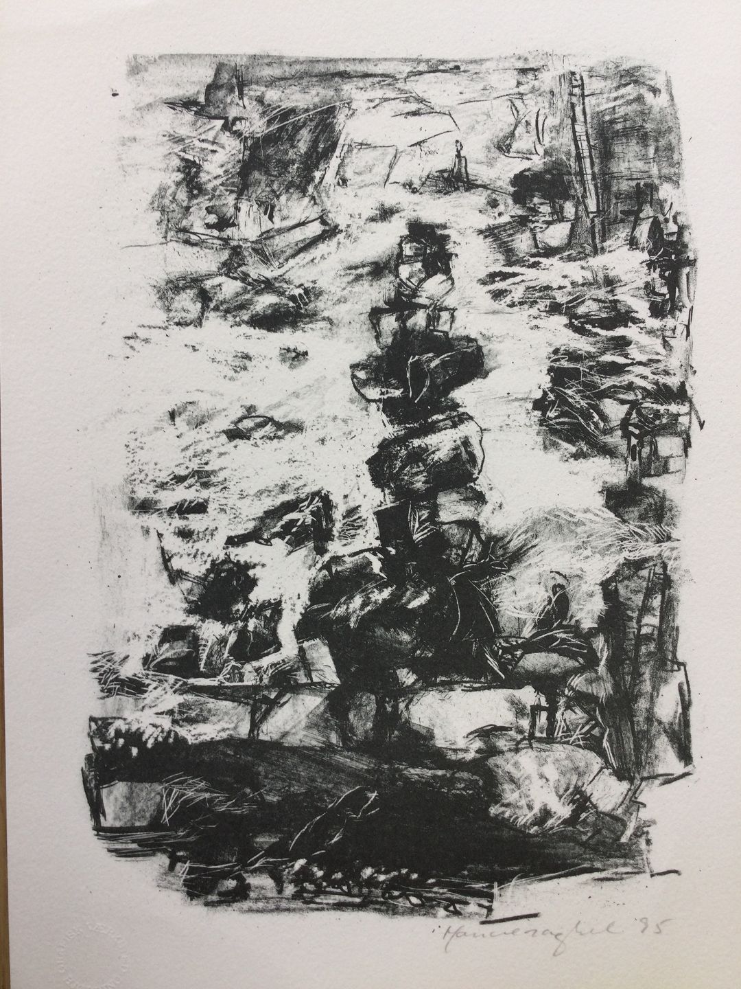 Litografi af Anita Houvenaeghel - Komposition 1995.