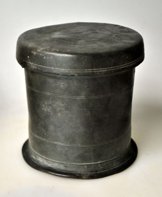 Rund tobaks dåse af tin, 18. årh. Danmark.