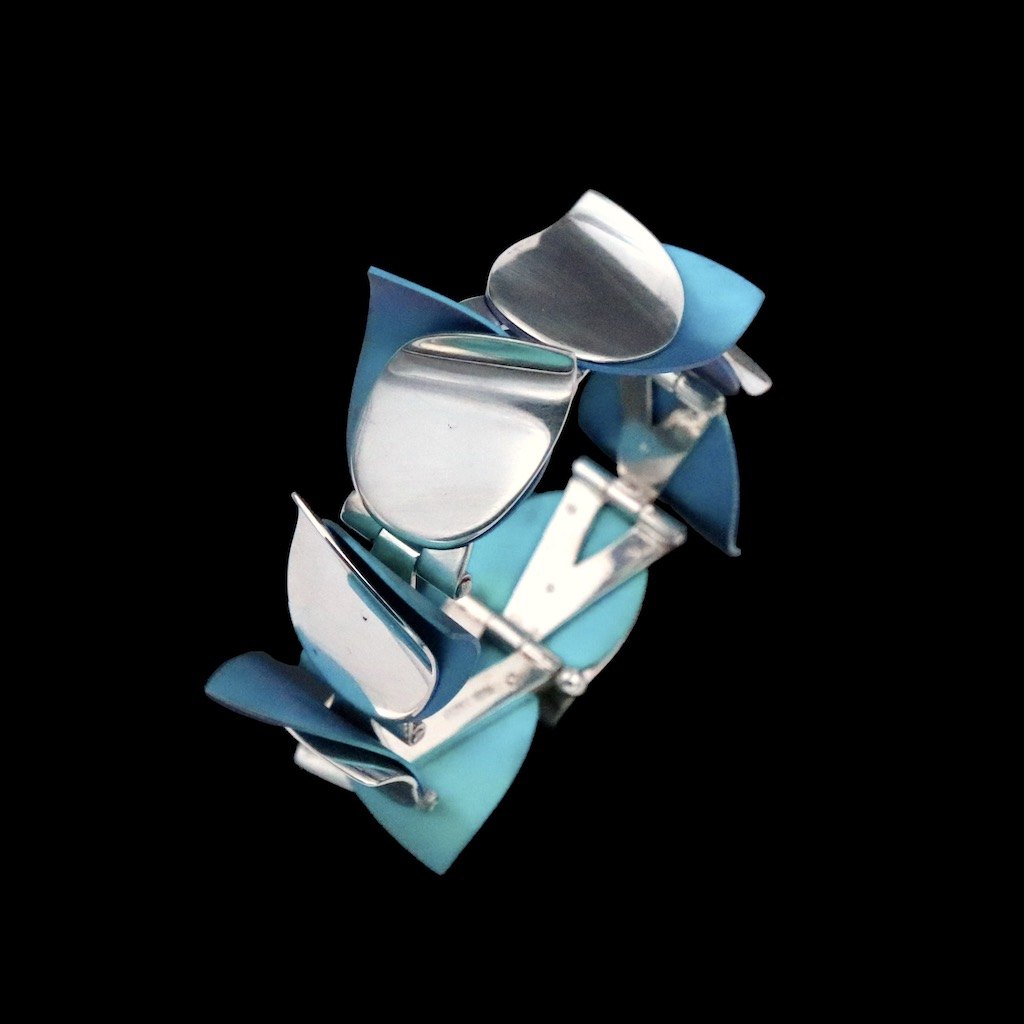 Kirsten Pontoppidan. Armbånd i sterlingsølv med farveoxideret titanium.