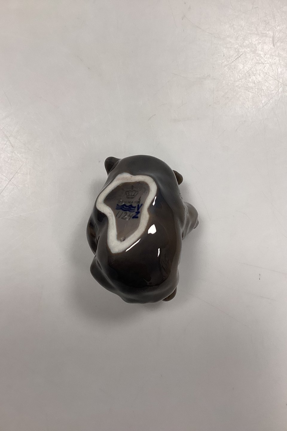 Royal Copenhagen Figur Bjørneunge No. 1124. Designet af Knud Kyhn. Mørk gråbrun farve. 1. Sortering.