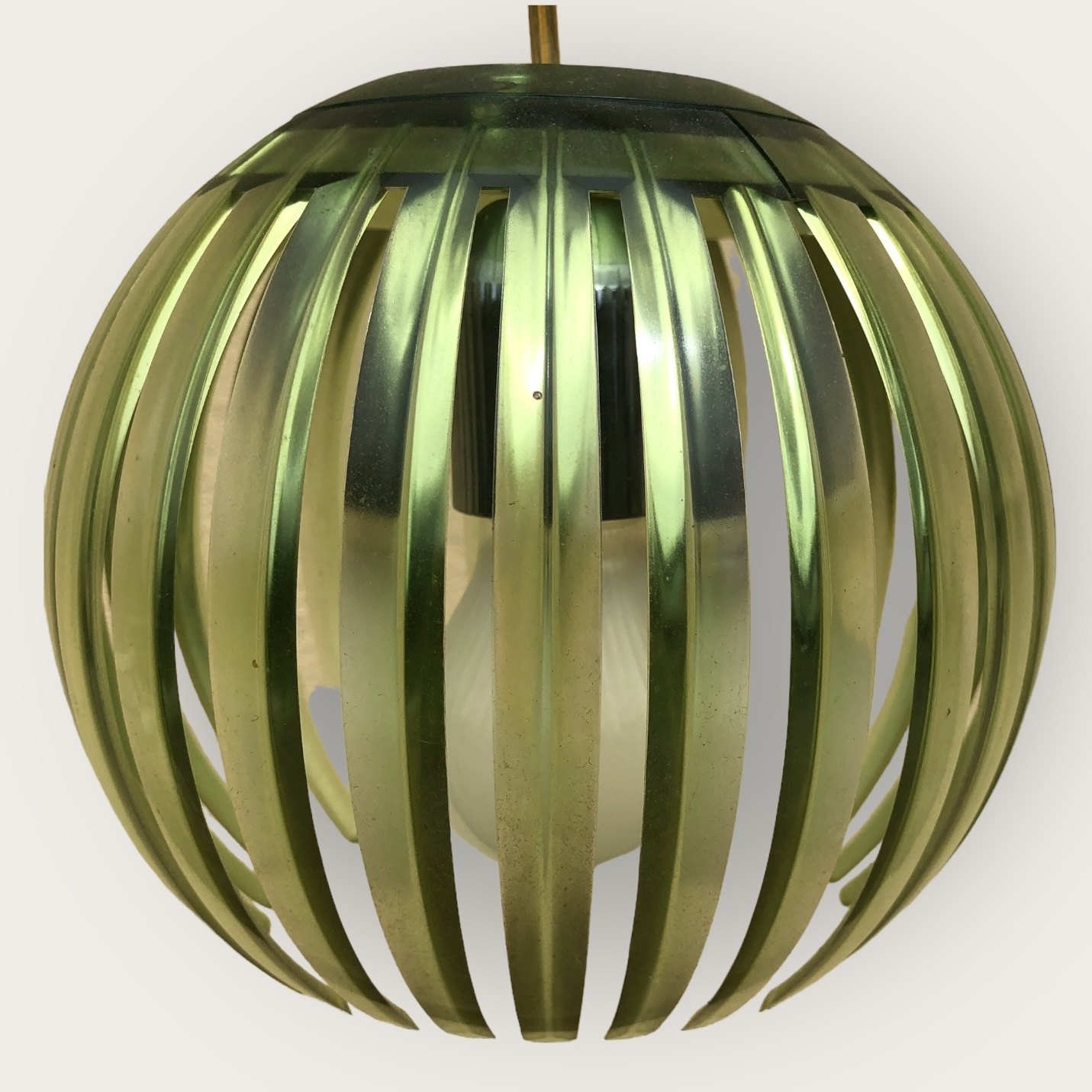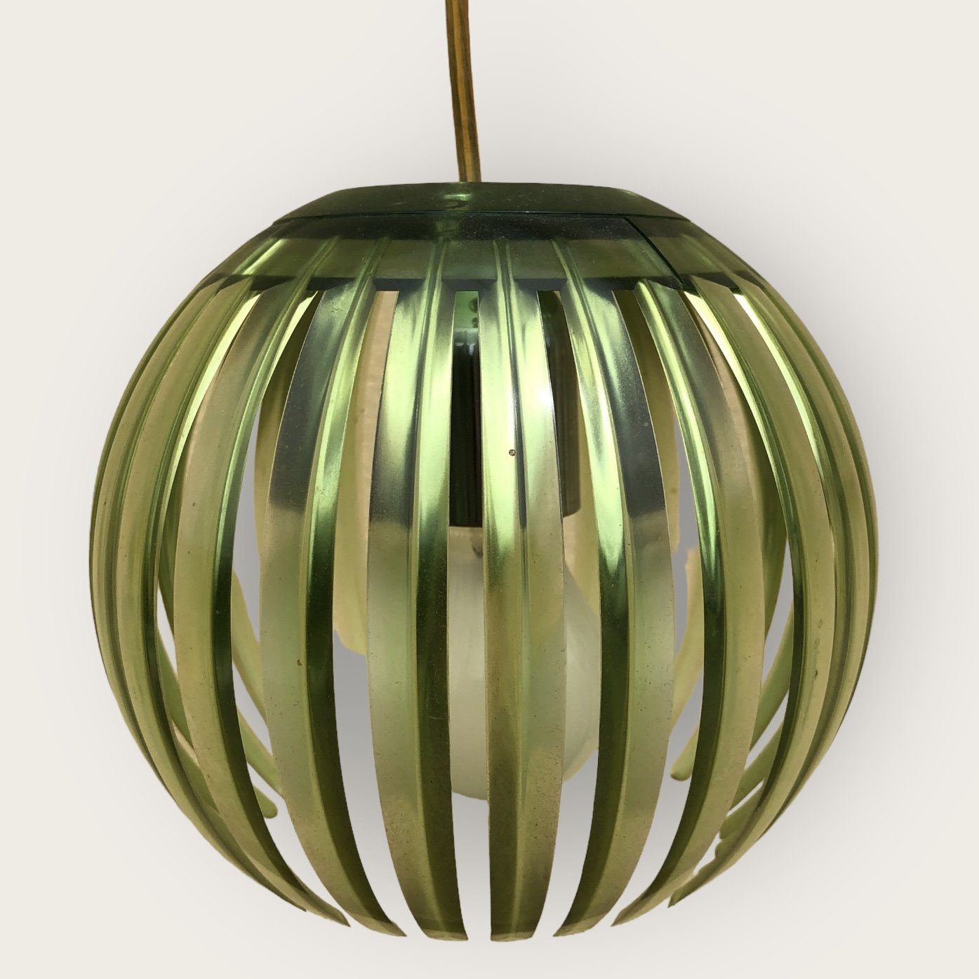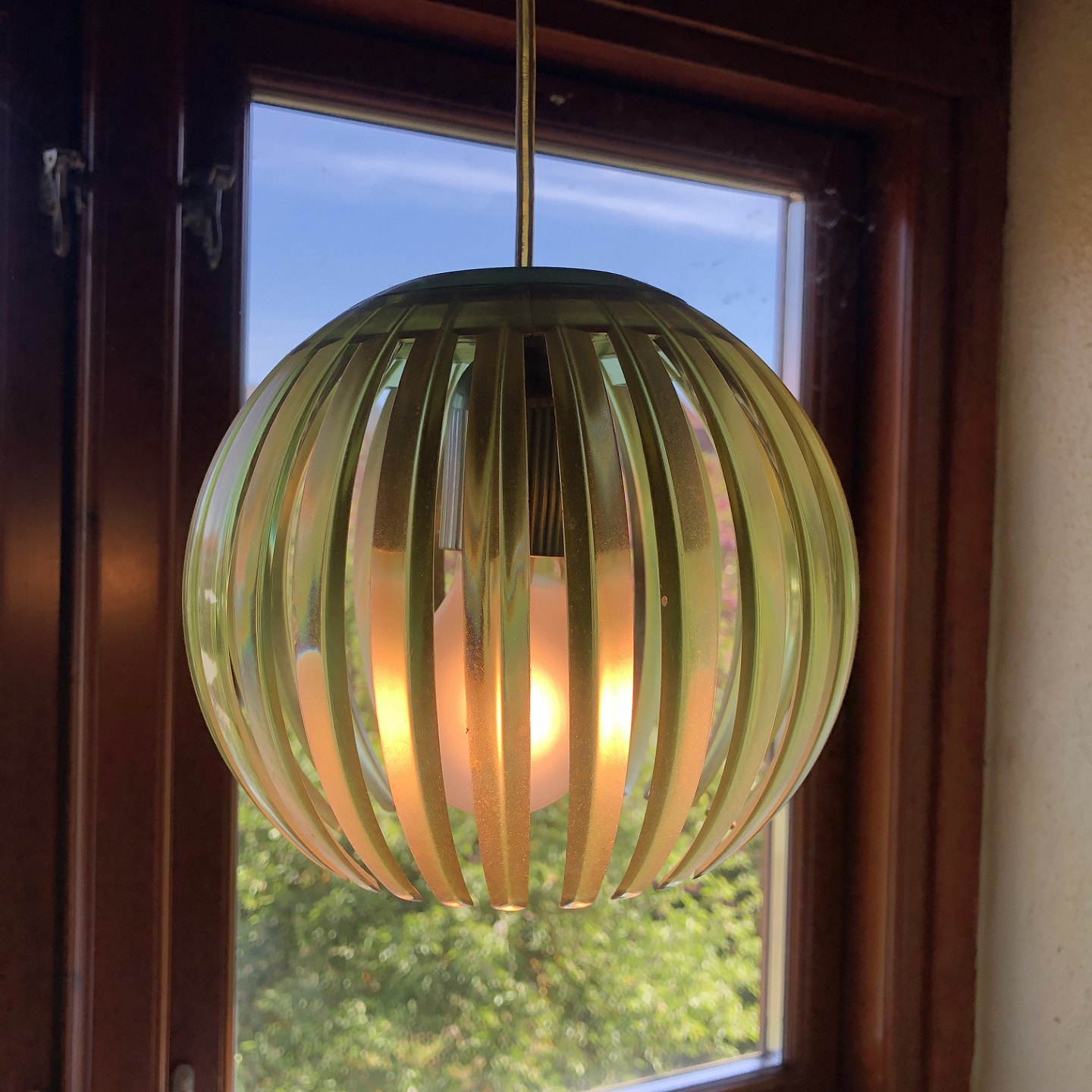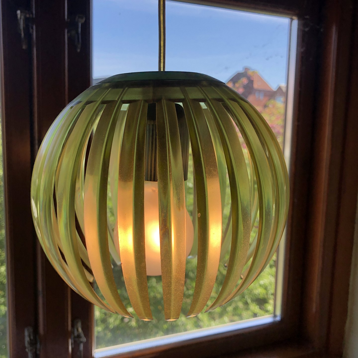 Grøn plastlampe i fin stand med godt lys. Diameter ca. 18cm