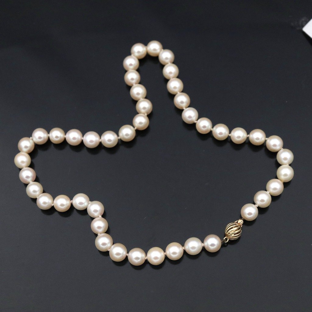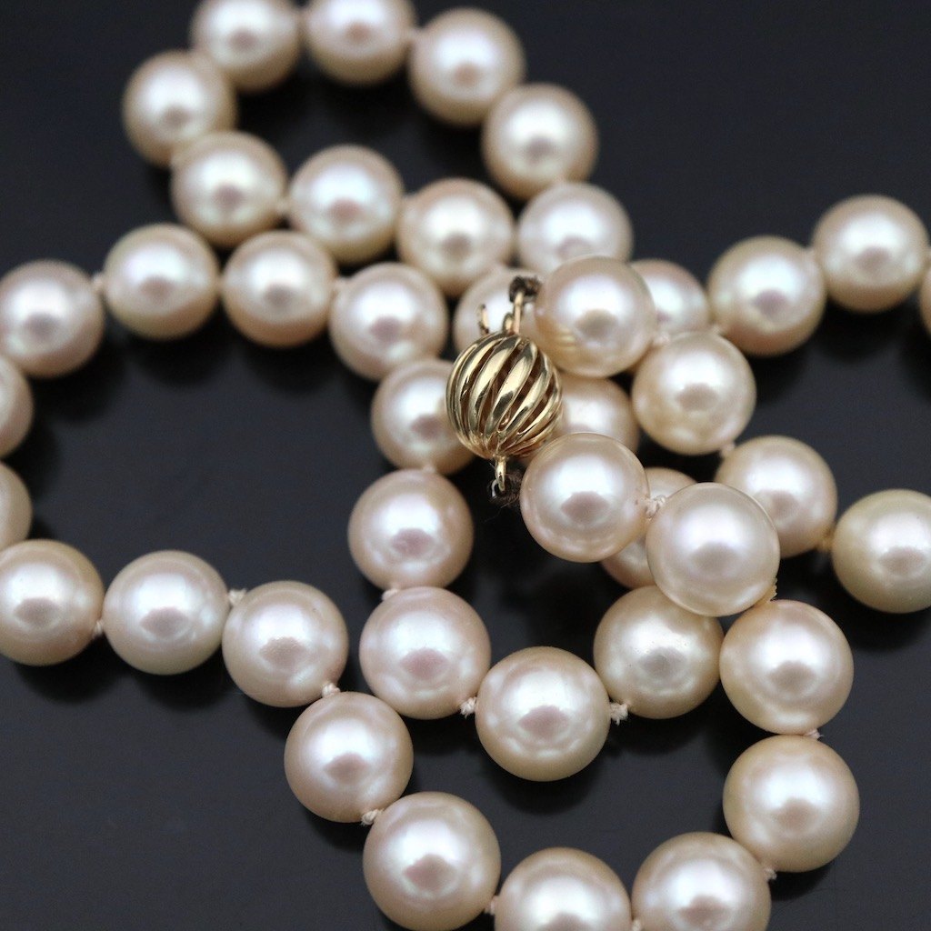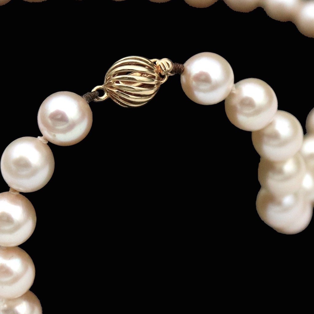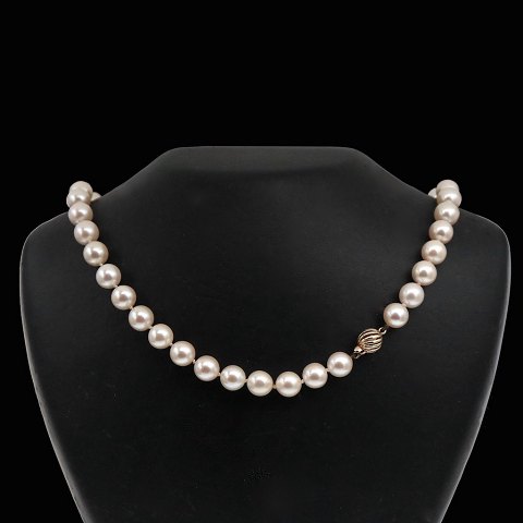 Akoya Perlekæde med lås i 18k guld.