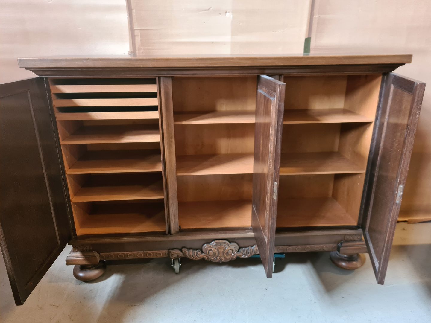 Dækketøjsskab i fineret og bejdset egetræ, fra 1930erne.