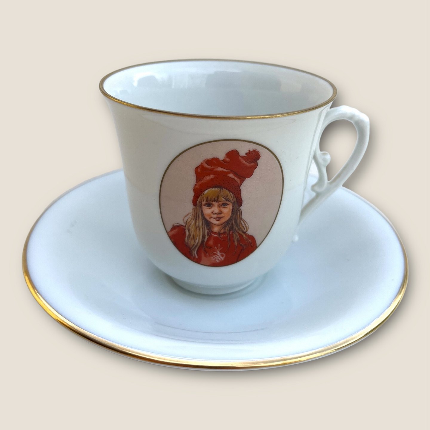 | Bing & Grøndahl, Carl Larsson, Kop underkop og kagetallerken, Motiv nr. 6, "Iduna", 7cm høj, 7,5cm i diameter, 1.sortering *Pæn stand*