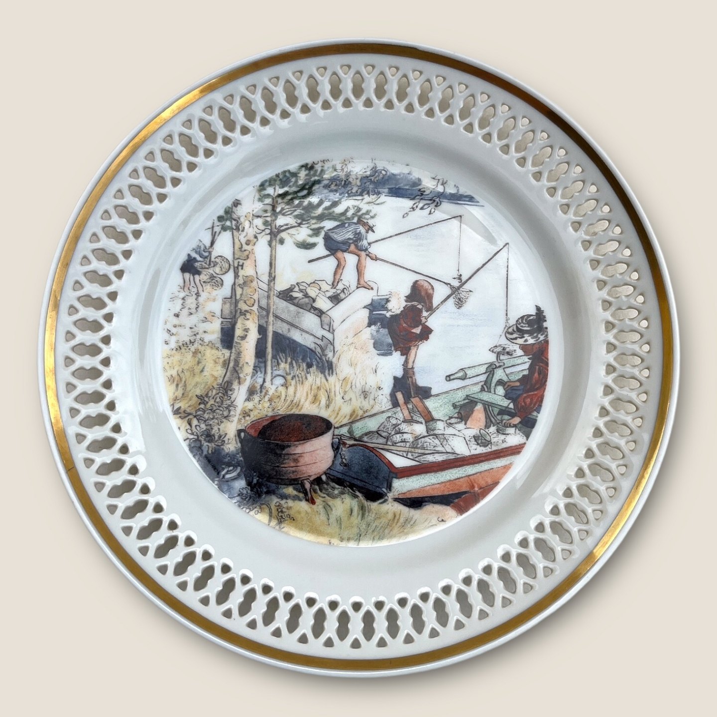 | Bing & Grøndahl, Carl Larsson, Kop, underkop og kagetallerken, Motiv nr. 9 "Krebsefangst", 7cm høj, 7,5cm i diameter, 1.sortering *Perfekt stand*