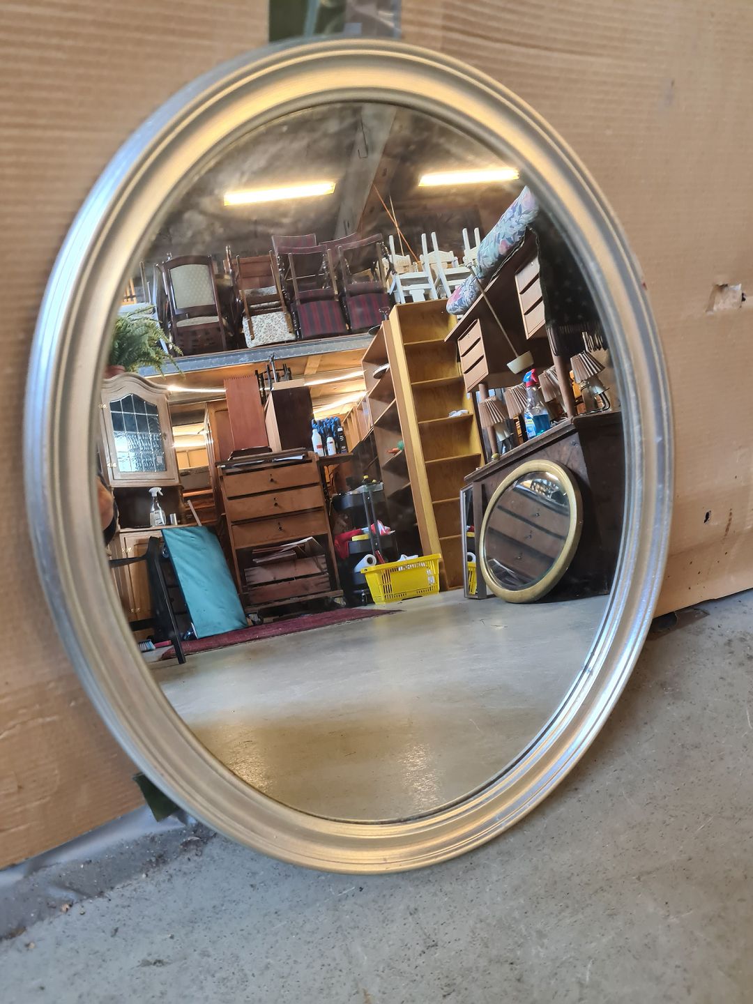 Sølvmalet ovalt spejl, fra 1990erne.