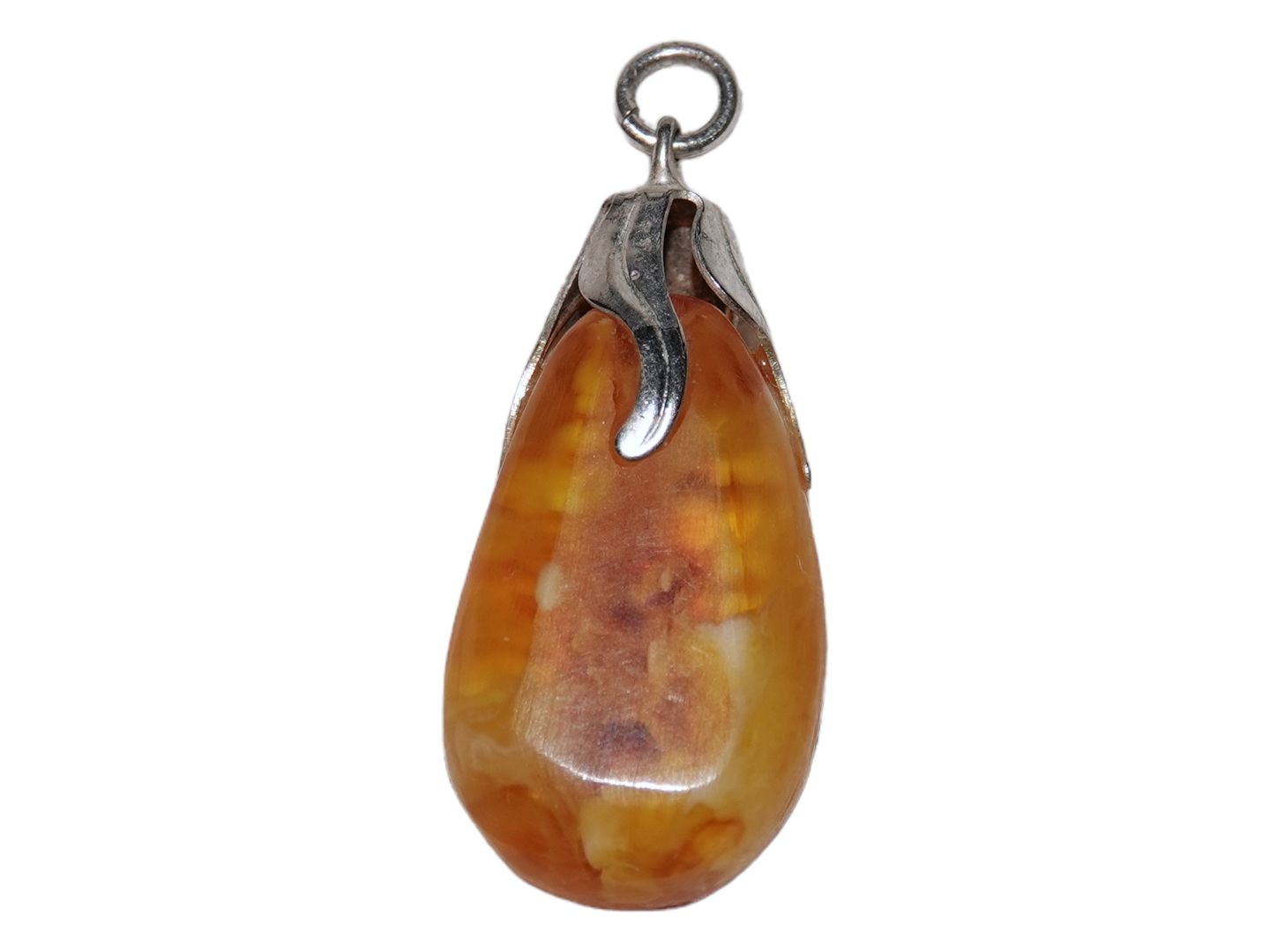Light amber pendant with silver mounting.