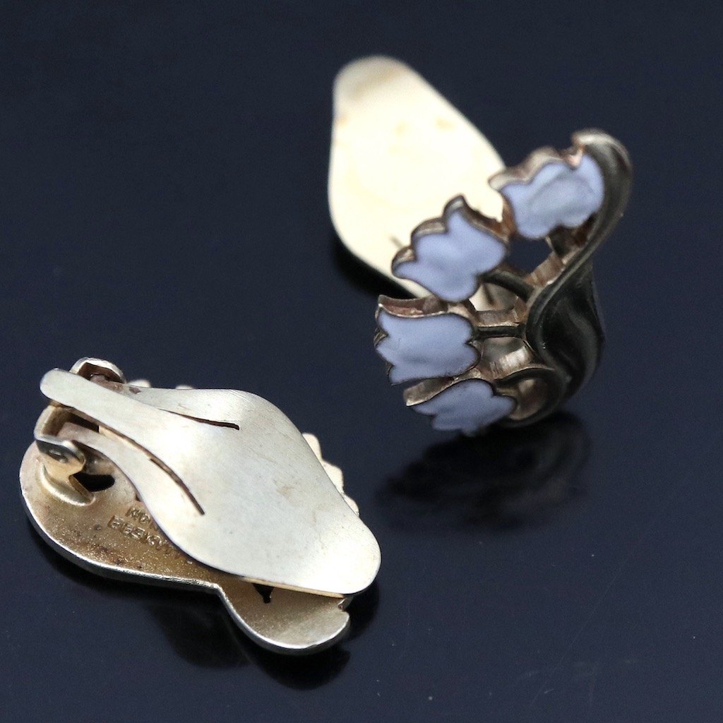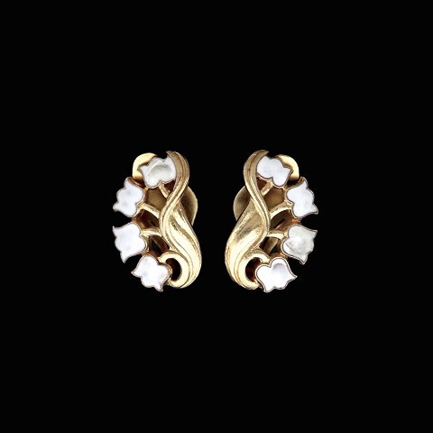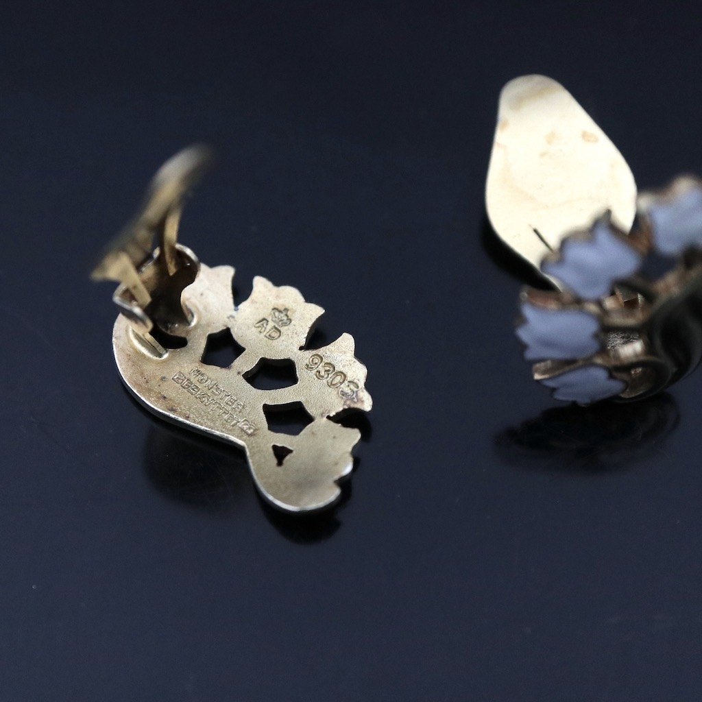 A. Dragsted. Øreklips i forgyldt sterlingsølv med emalje.