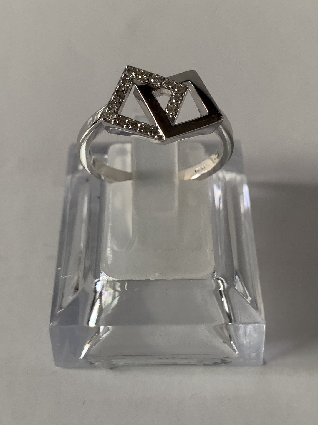 Damering i 14 karat hvidguld, med indlagt brillanter. Størrelse. 56