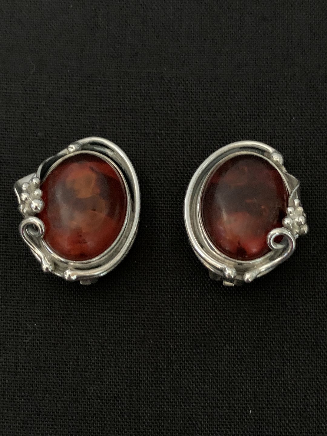 Sølv Øreclips med indlagt Rav