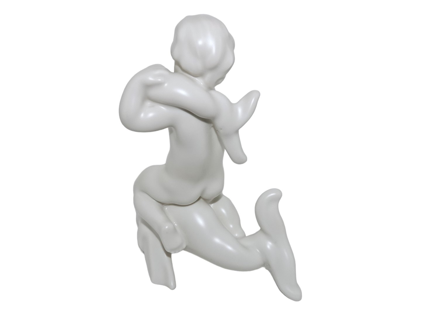 Bing & Grøndahl hvid figur, dreng med delfin udført med mat glasur.