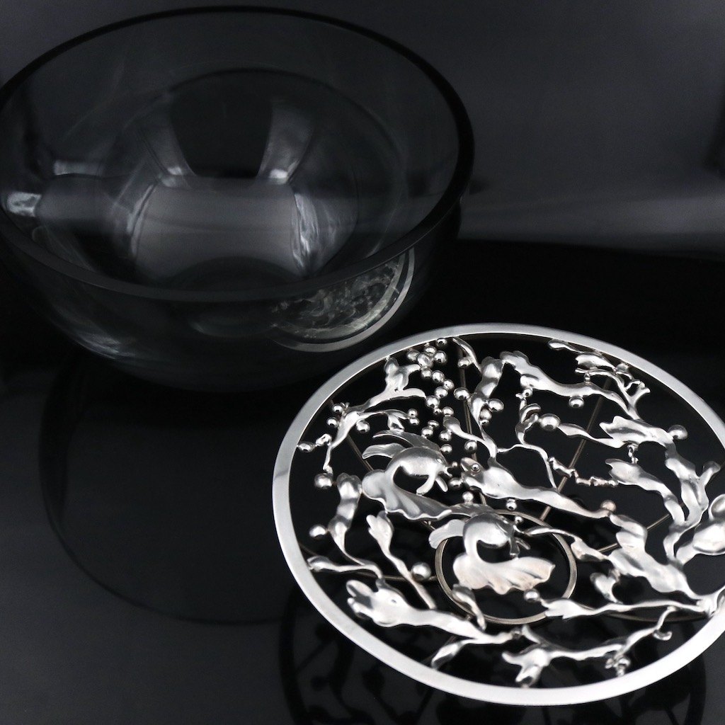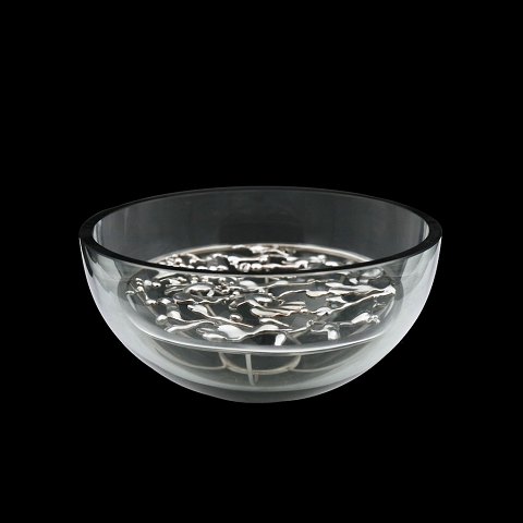 Aage Weimar - Denmark. Large Glass Seafood Bowl with Sterling Silver Insert.