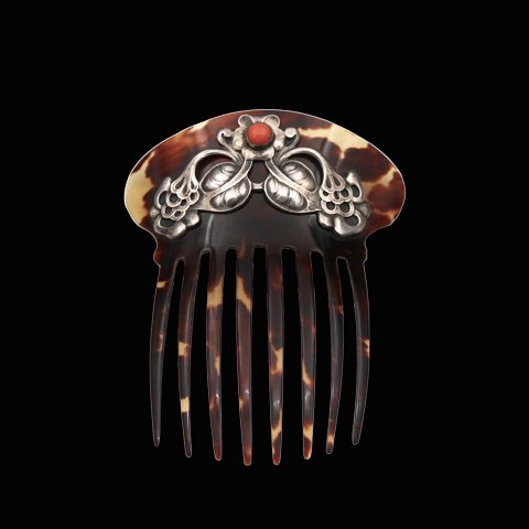 Rare Antique Georg Jensen Hair Comb with Silver and Coral. 1904-08 Hallmarks.