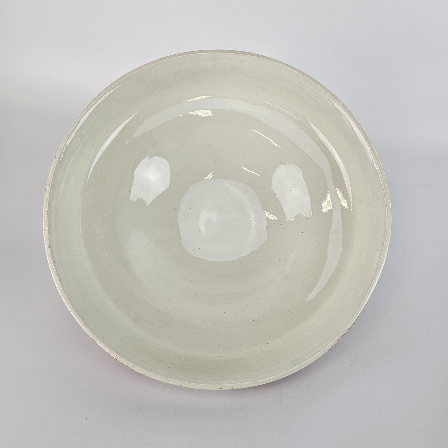 Rød Paris er af engelsk fajance dekoreret med forskellige landskaber og blomster i kanten, alt i forskellige røde nuancer