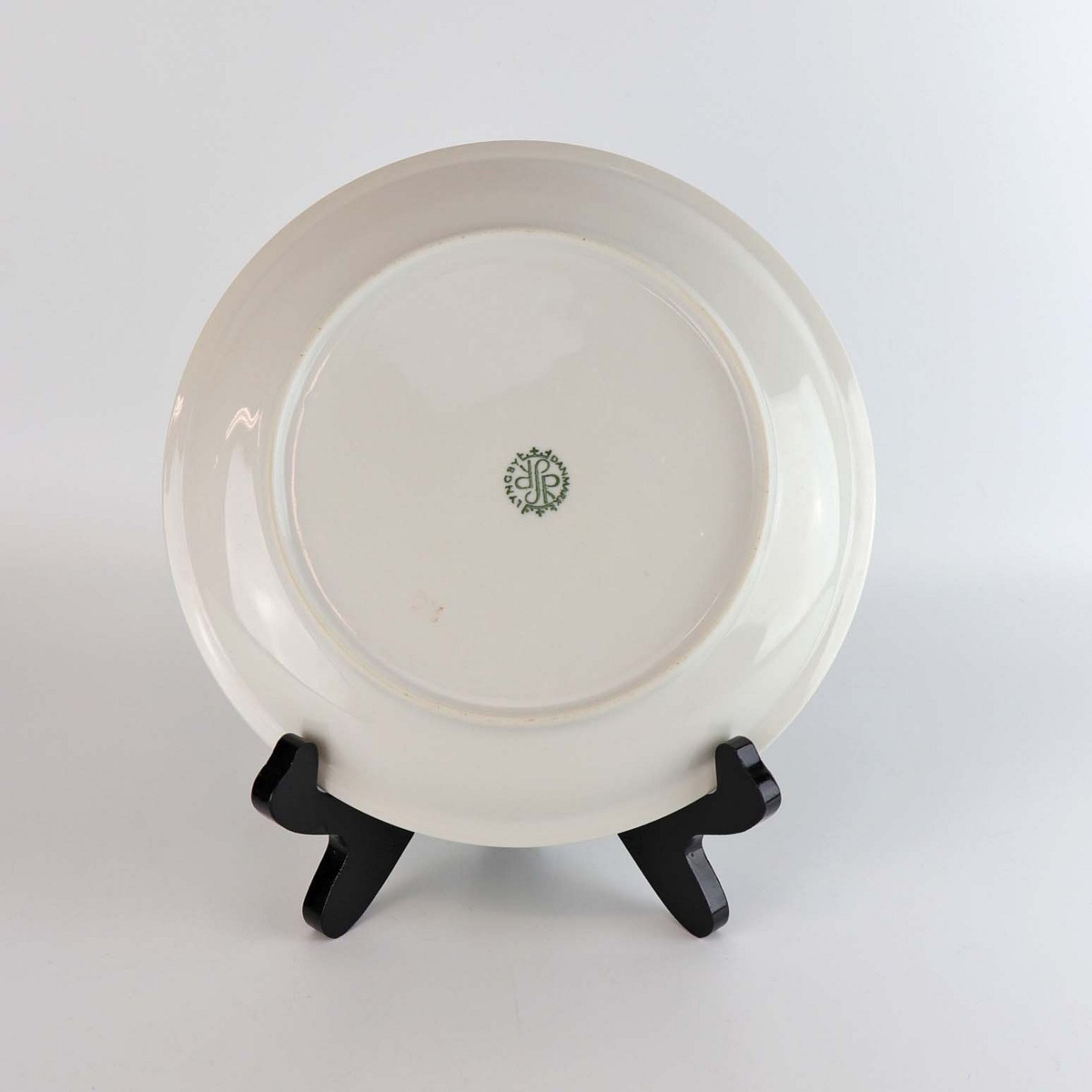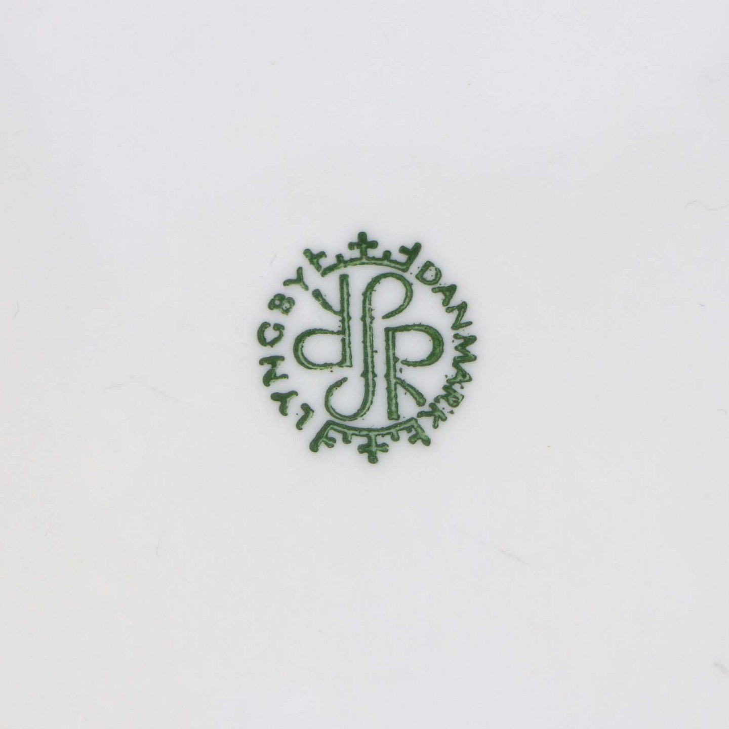 Service i glat hvidt porcelæn, som er påført en cirkel af lotusblade. Stellet er produceret i flere farver