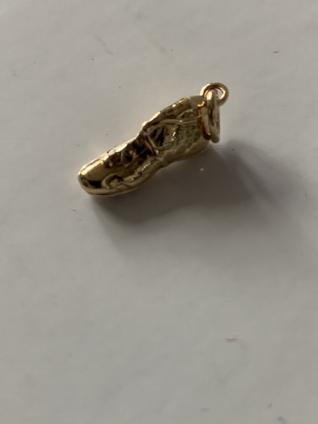 Charm shaped like soccer shoes in 14 carat gold, stamped 585.