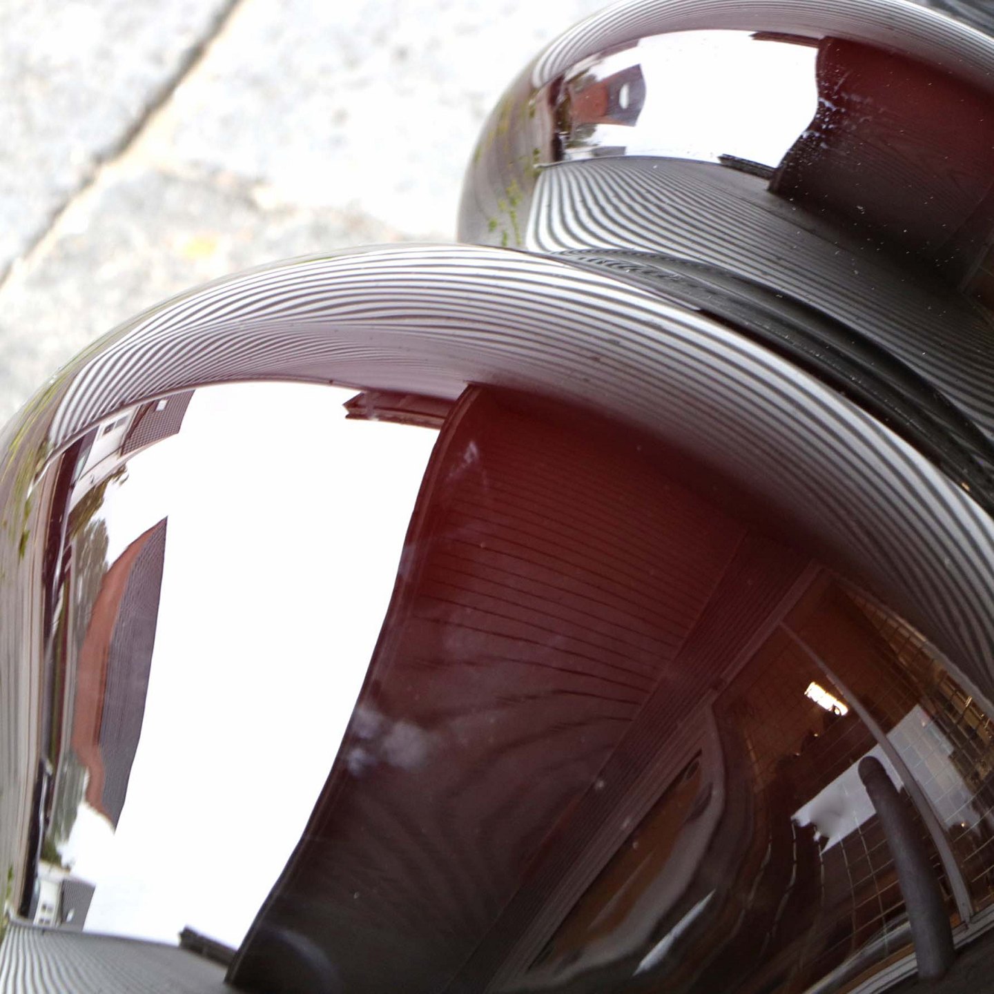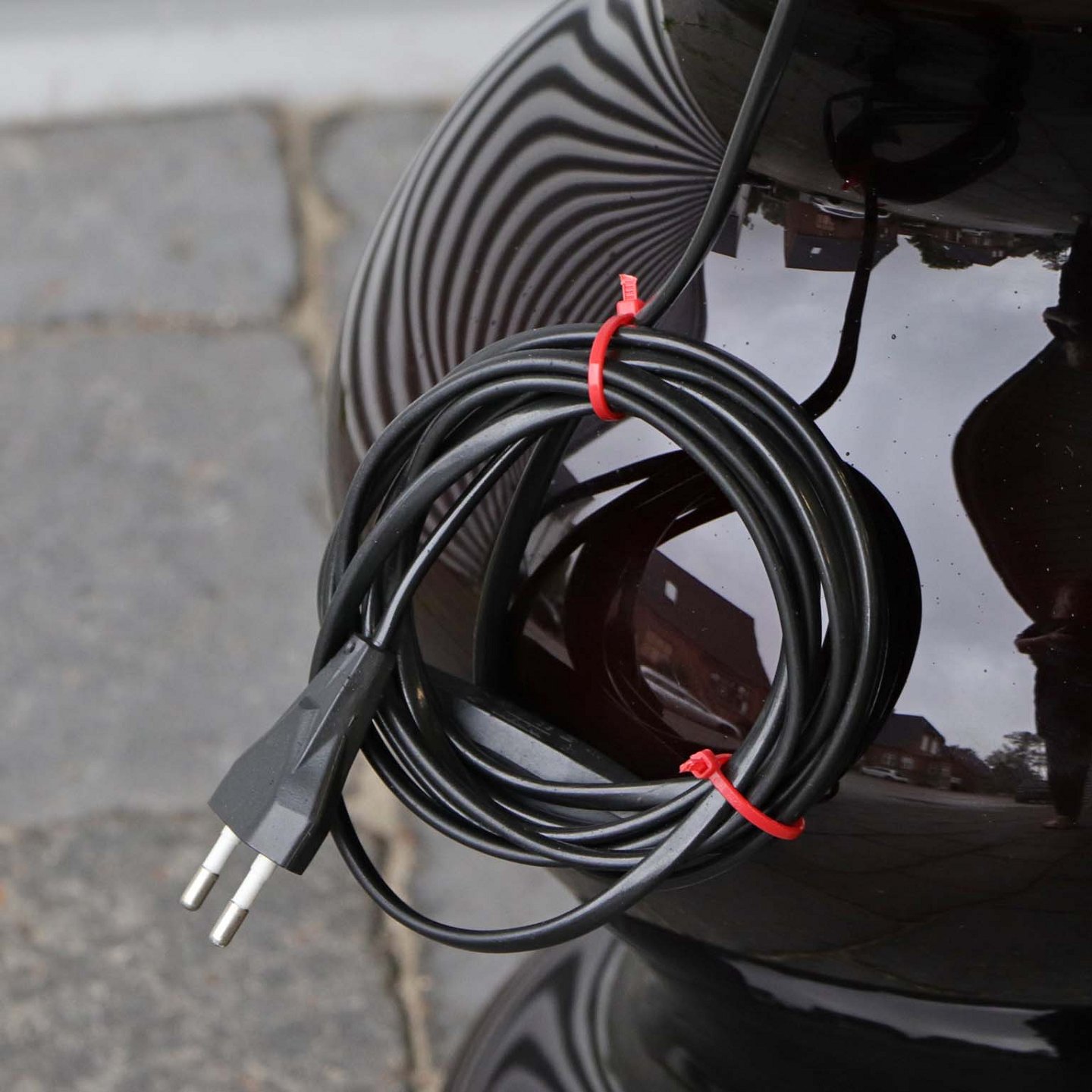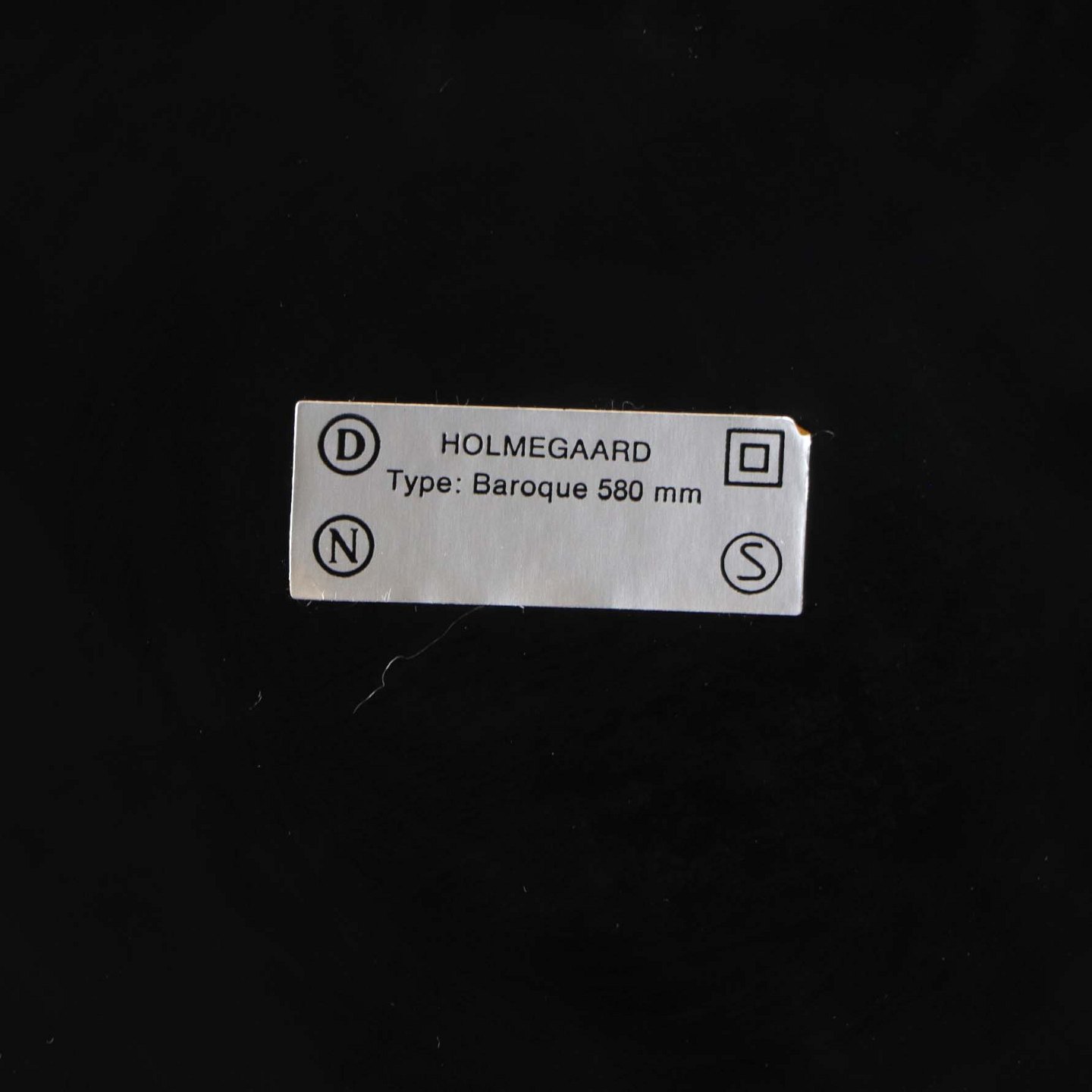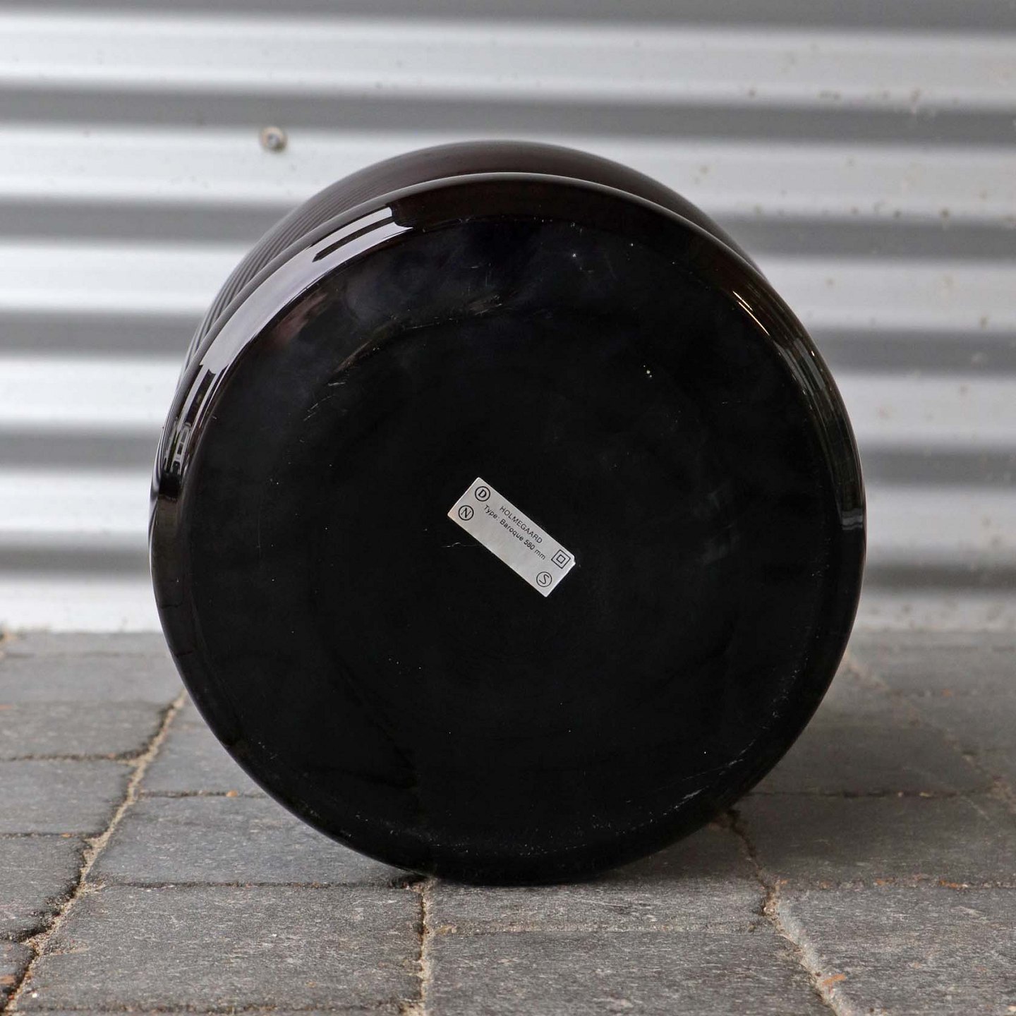 Stor sjælden bordlampe i mundblæst sort glas med mørkerød undertone og messingfarvet top