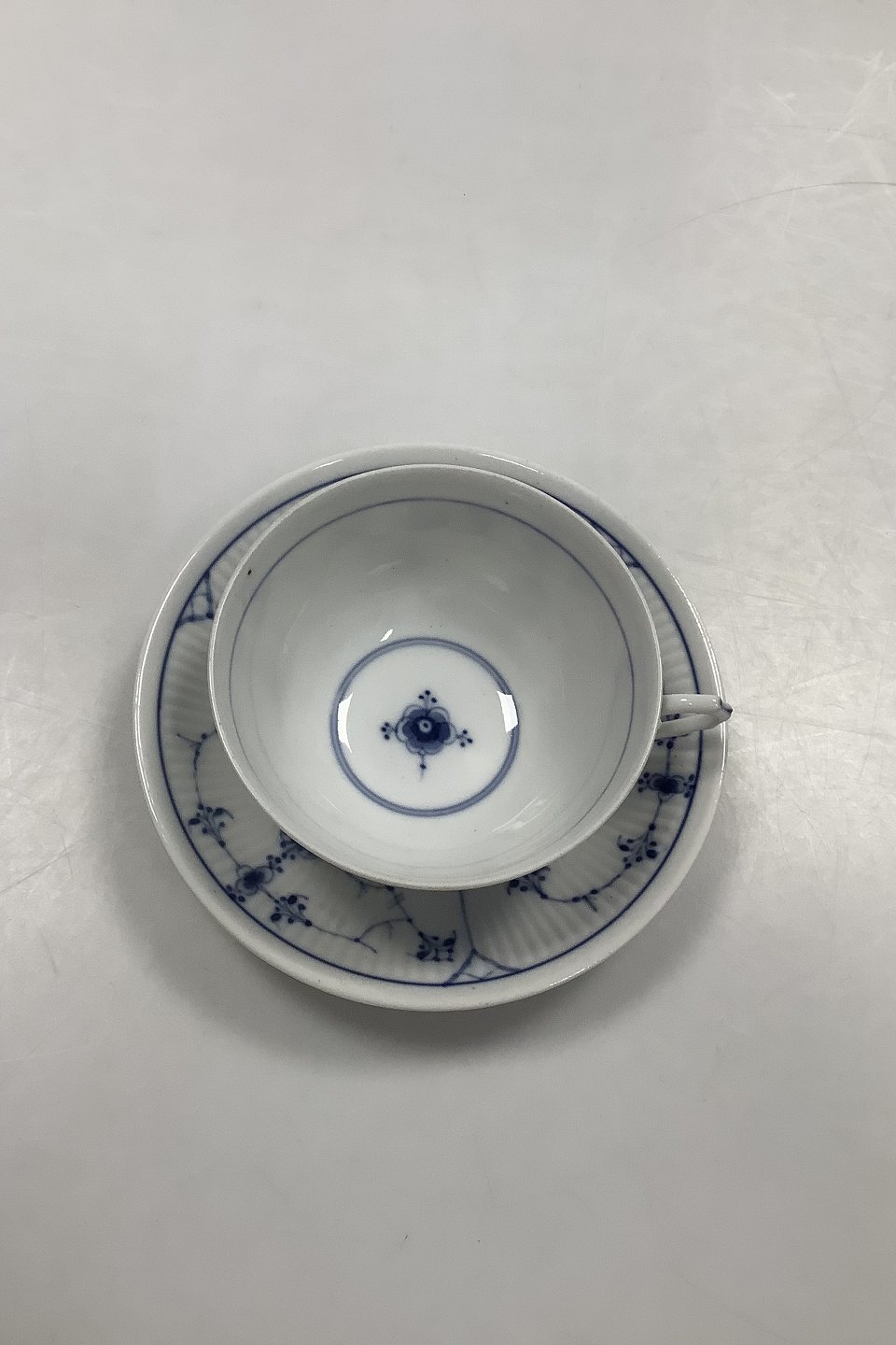 Bing og Grøndahl Blålmalet / Musselmalet Riflet Stor Thekop og underkop