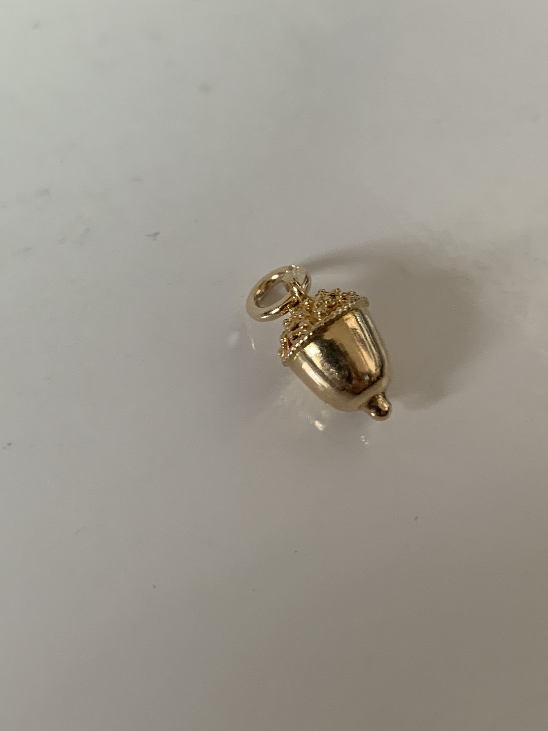 Flot og diskret vedhæng, udformet som Agern i 14 karat guld. Velegnet til halskæde, eller som vedhæng i armbånd. Smukt minimalistisk og klassisk smykke, der har været brugt i mange år.