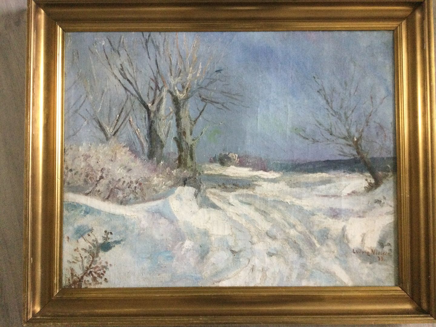 Maleri af Ludvig Nielsen - Vinterlandskab 1933.