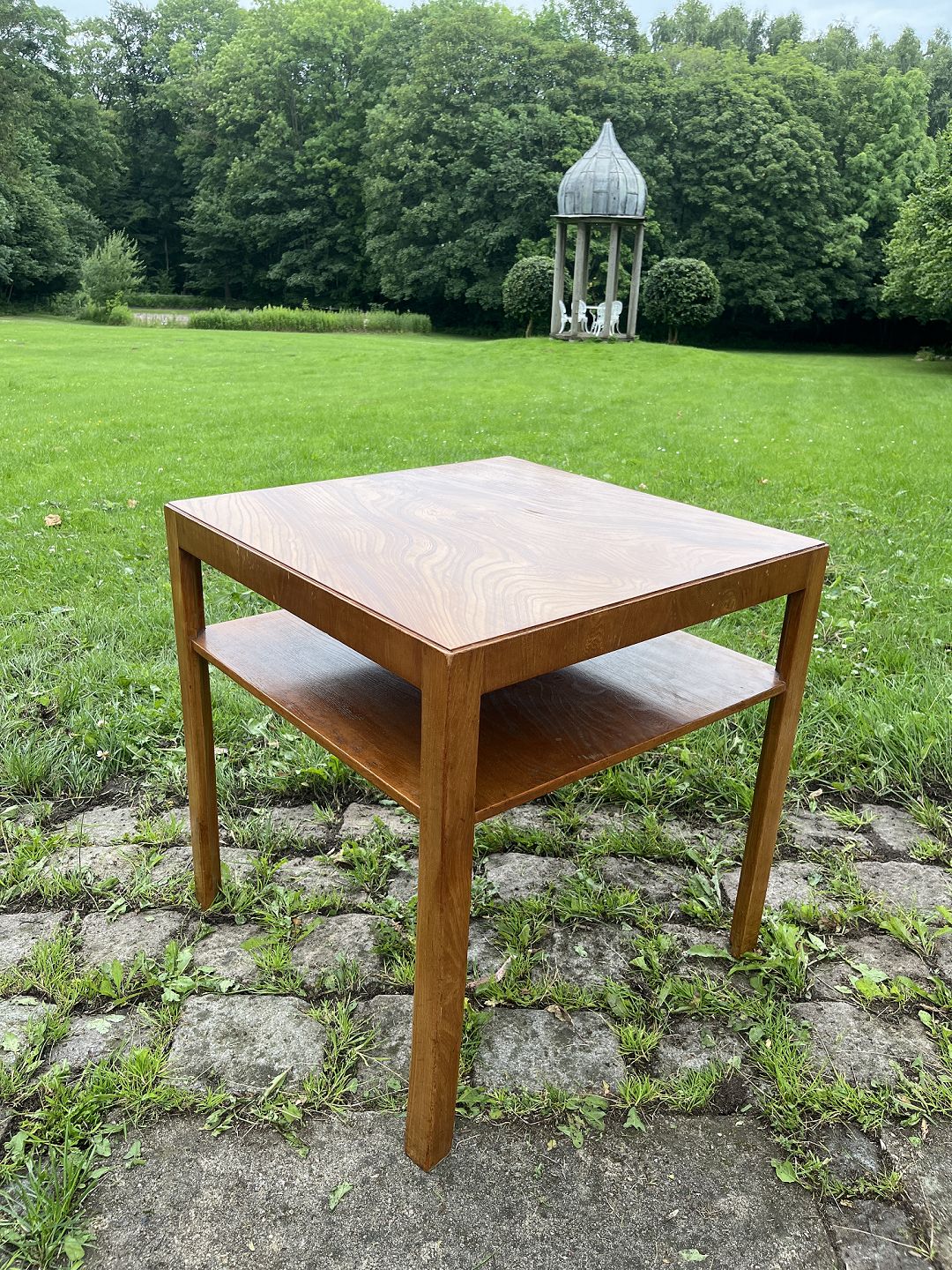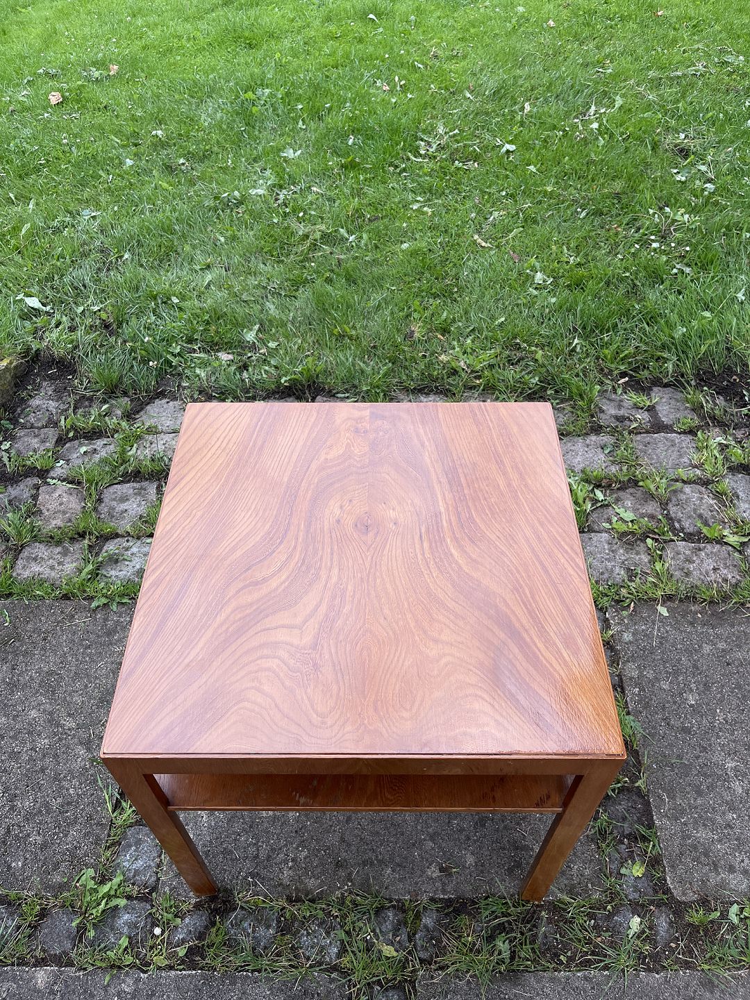 Dansk snedkermester sofabord med hylde og plade af fineret elmetræ fra 1930-1940