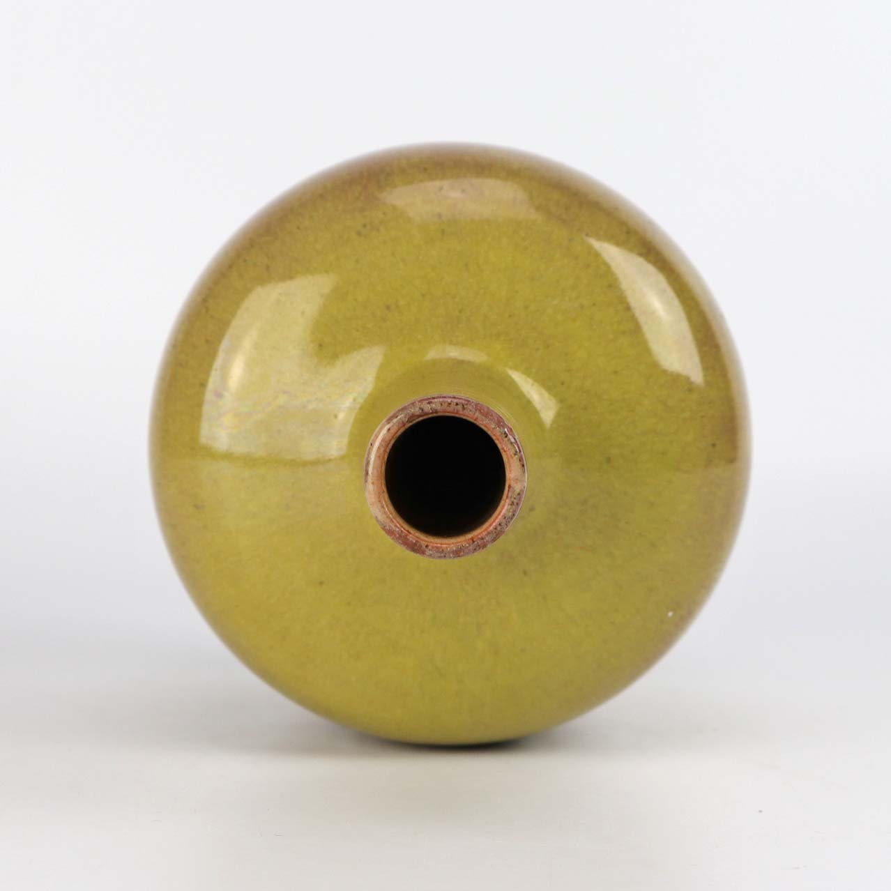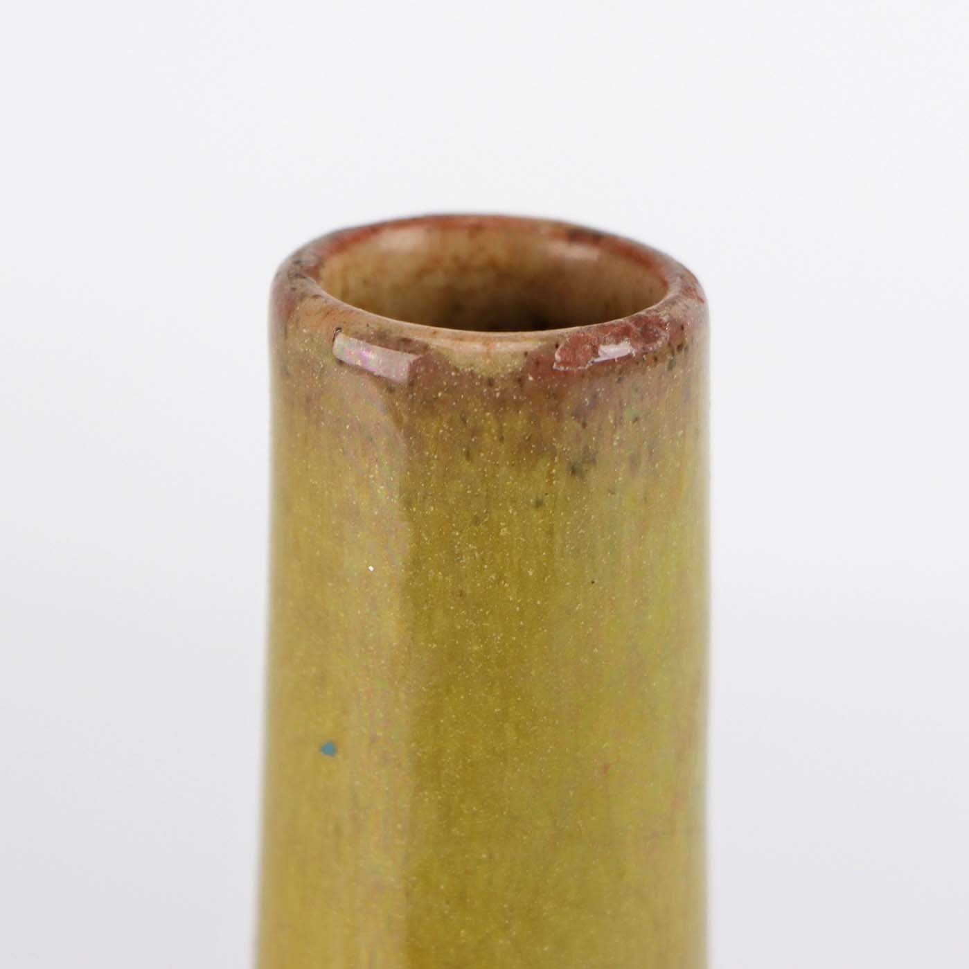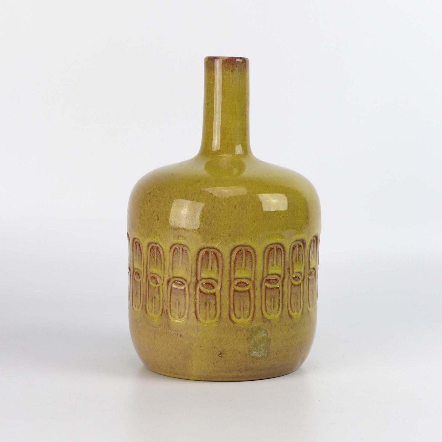 Vase i gul glaseret stentøj med abstrakt mønster og slank hals nr. 554