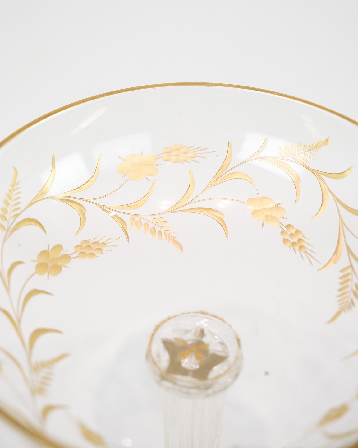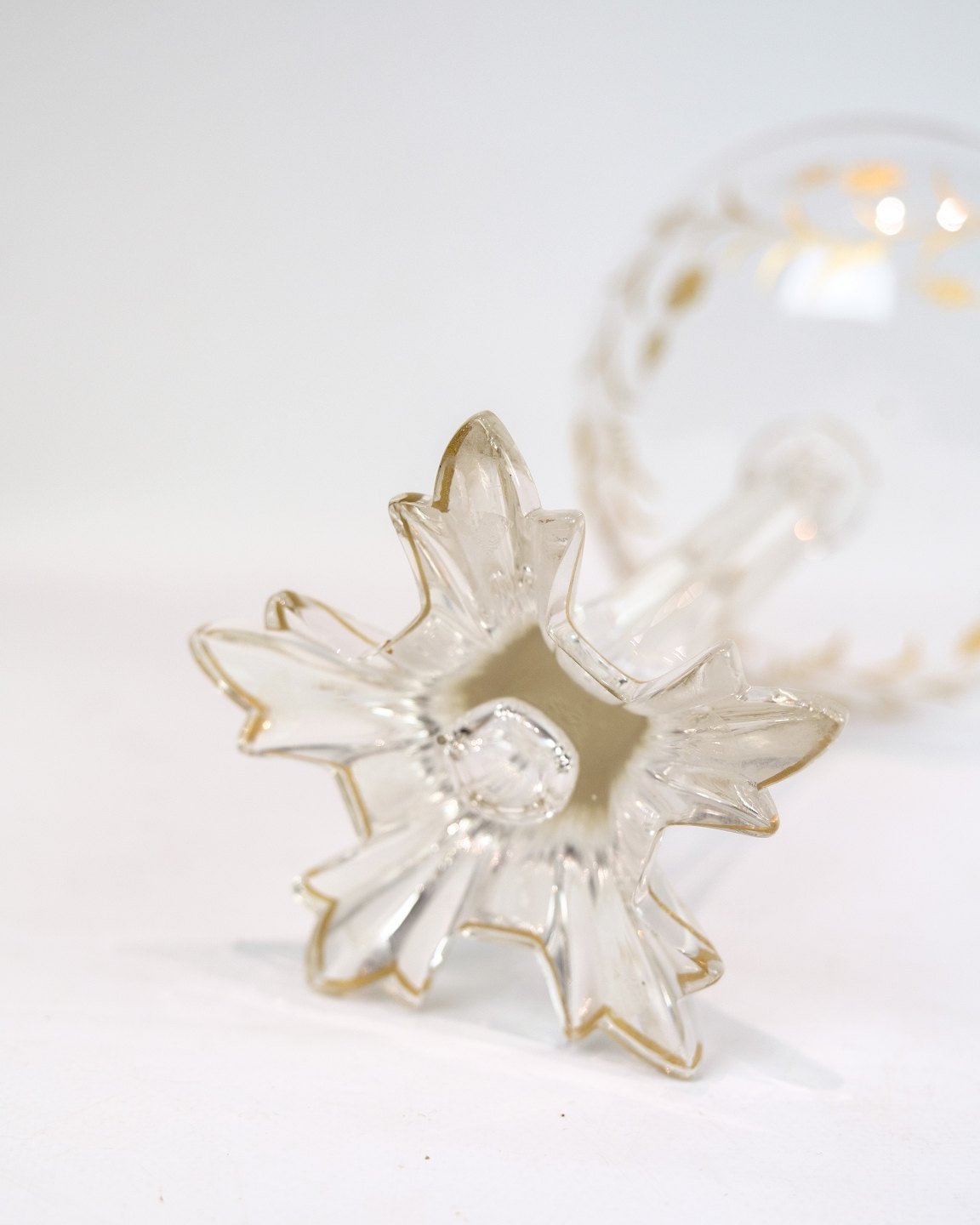 Glas opsats dekoreret med mønstret guld og udformeret med en unik måde fra omkring 1890'erne. Står i meget fin stand.