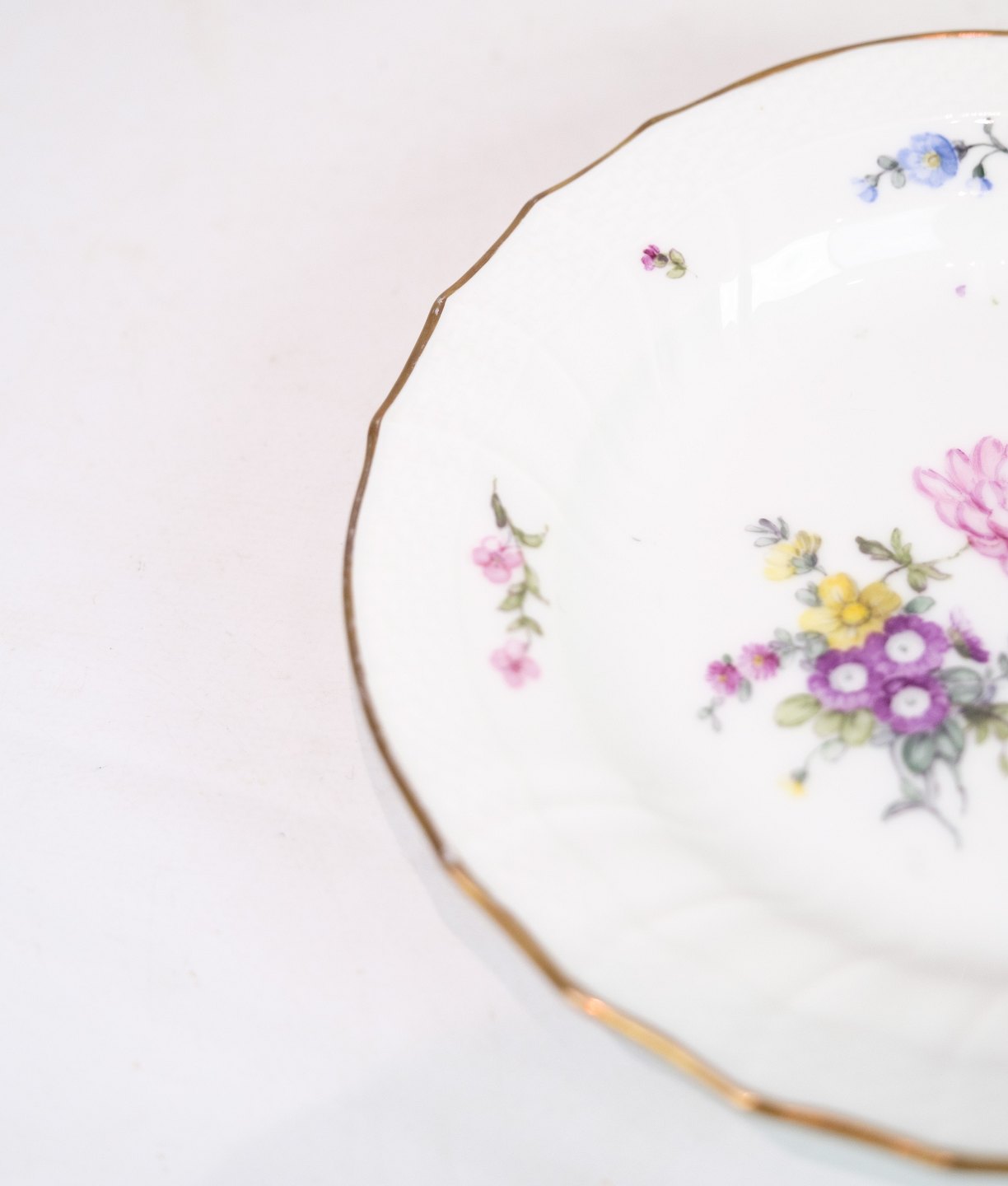 Frokost Tallerkener - Kgl. Saksisk Blomst - Håndmalet - Dekoreret Med Guld - Royal Copenhagen - Ca. År 1923