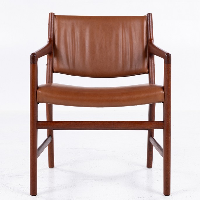 JH 507 - Sjælden armstol i massiv teak, betrukket med 'Old America'-anilinlæder.