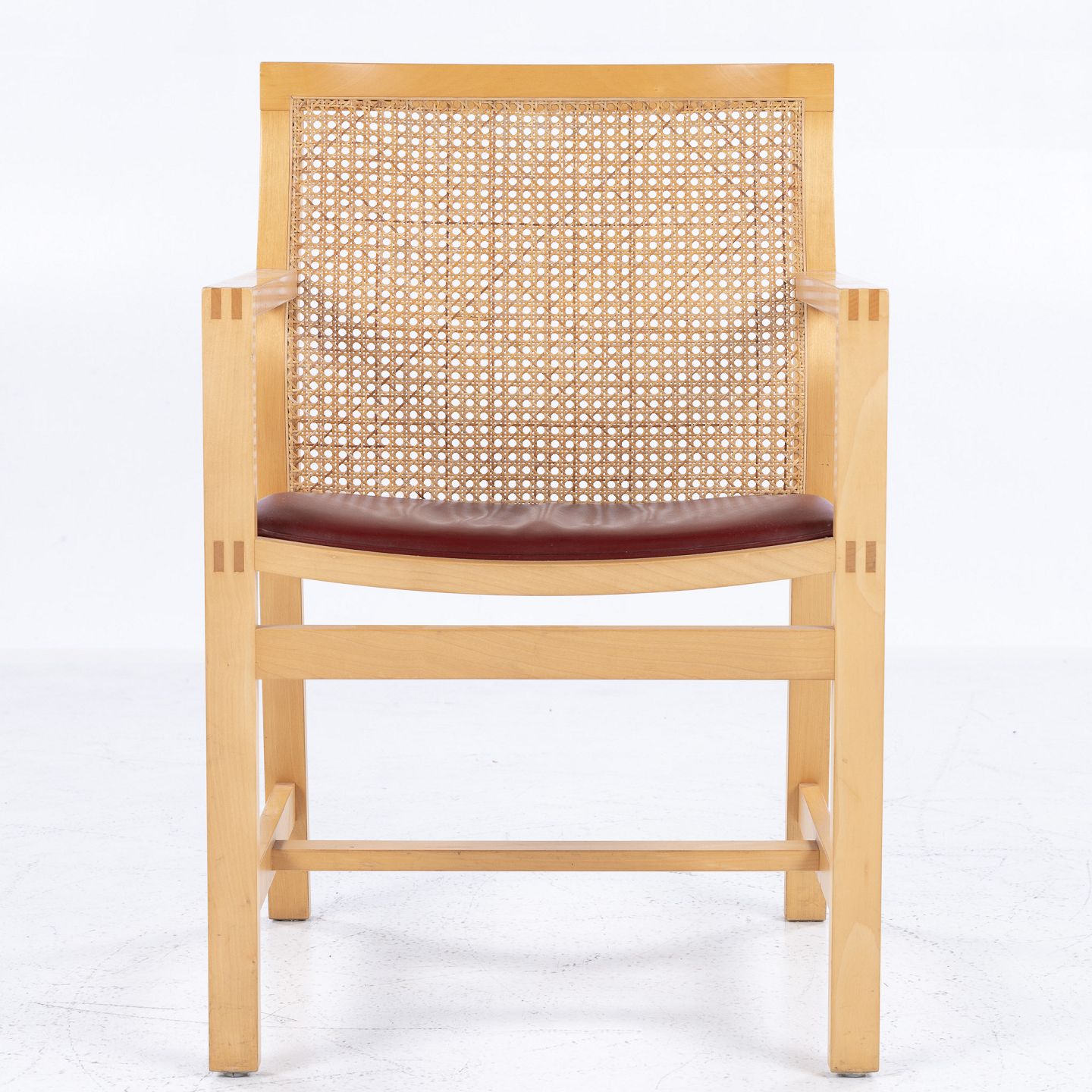 7512 - Armstol fra 'Kongeserien' i ask og patineret rødt læder.