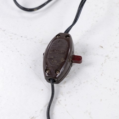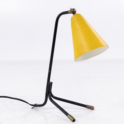 Et par bordlamper i sort- og gullakeret metal med sko i messing. 1950'erne.