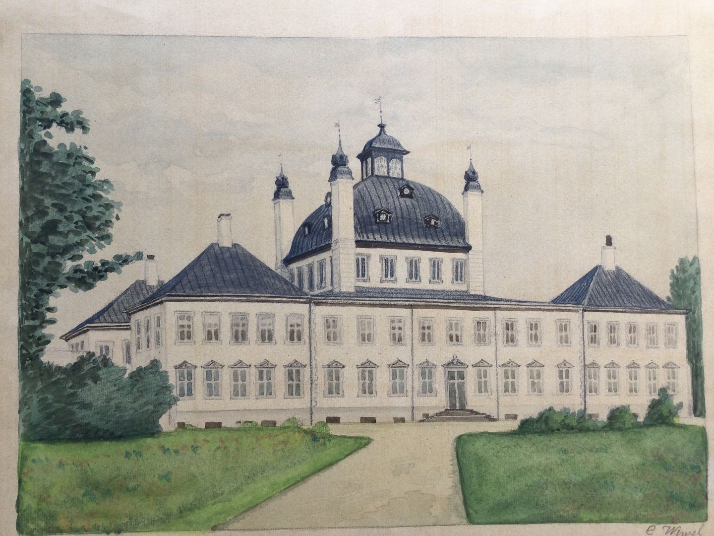Akvarel af Wiwel - Fredensborg Slot.