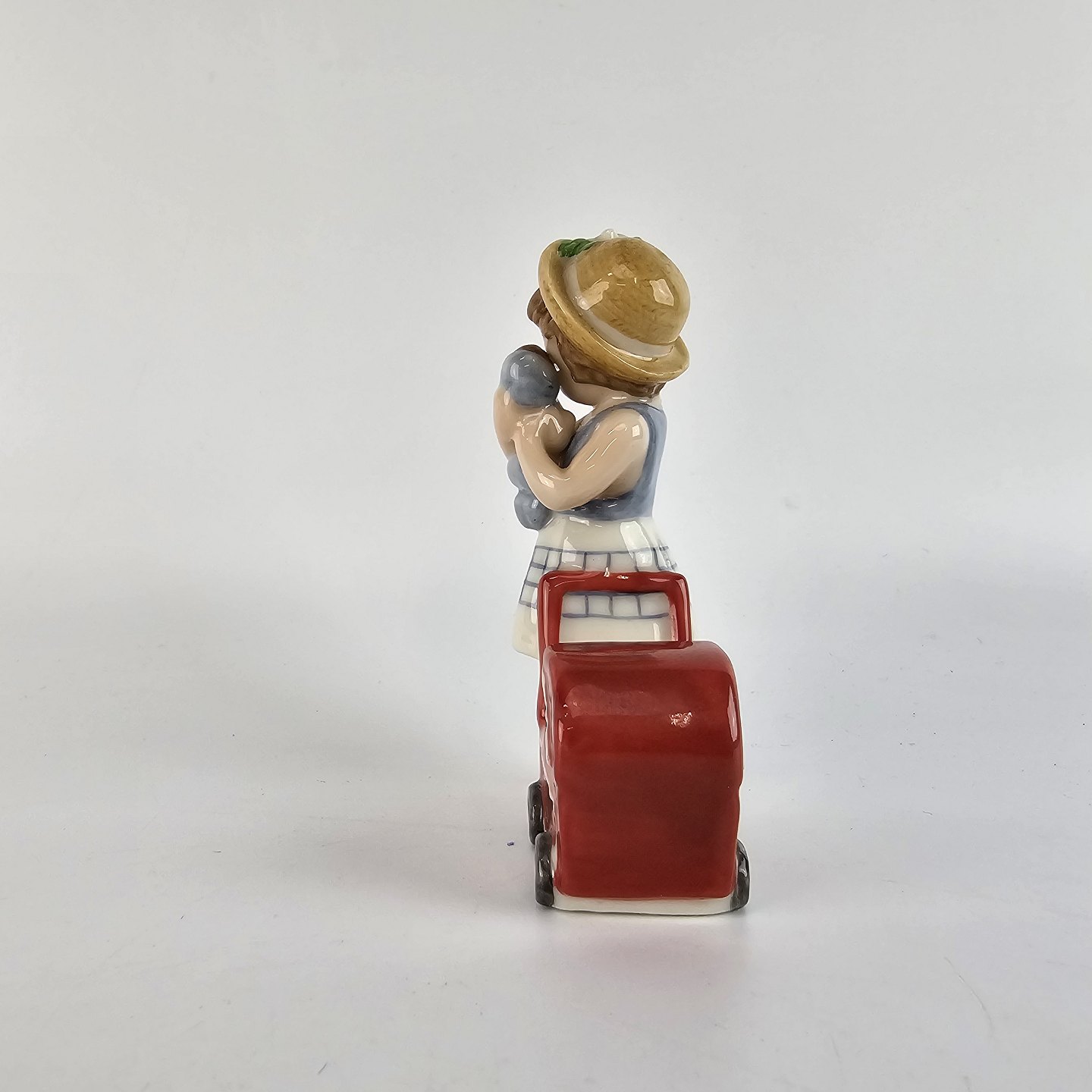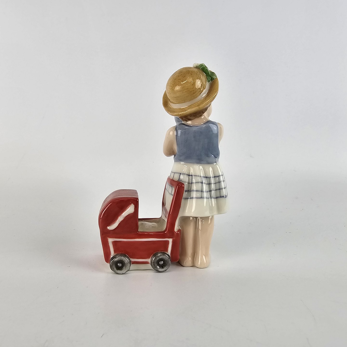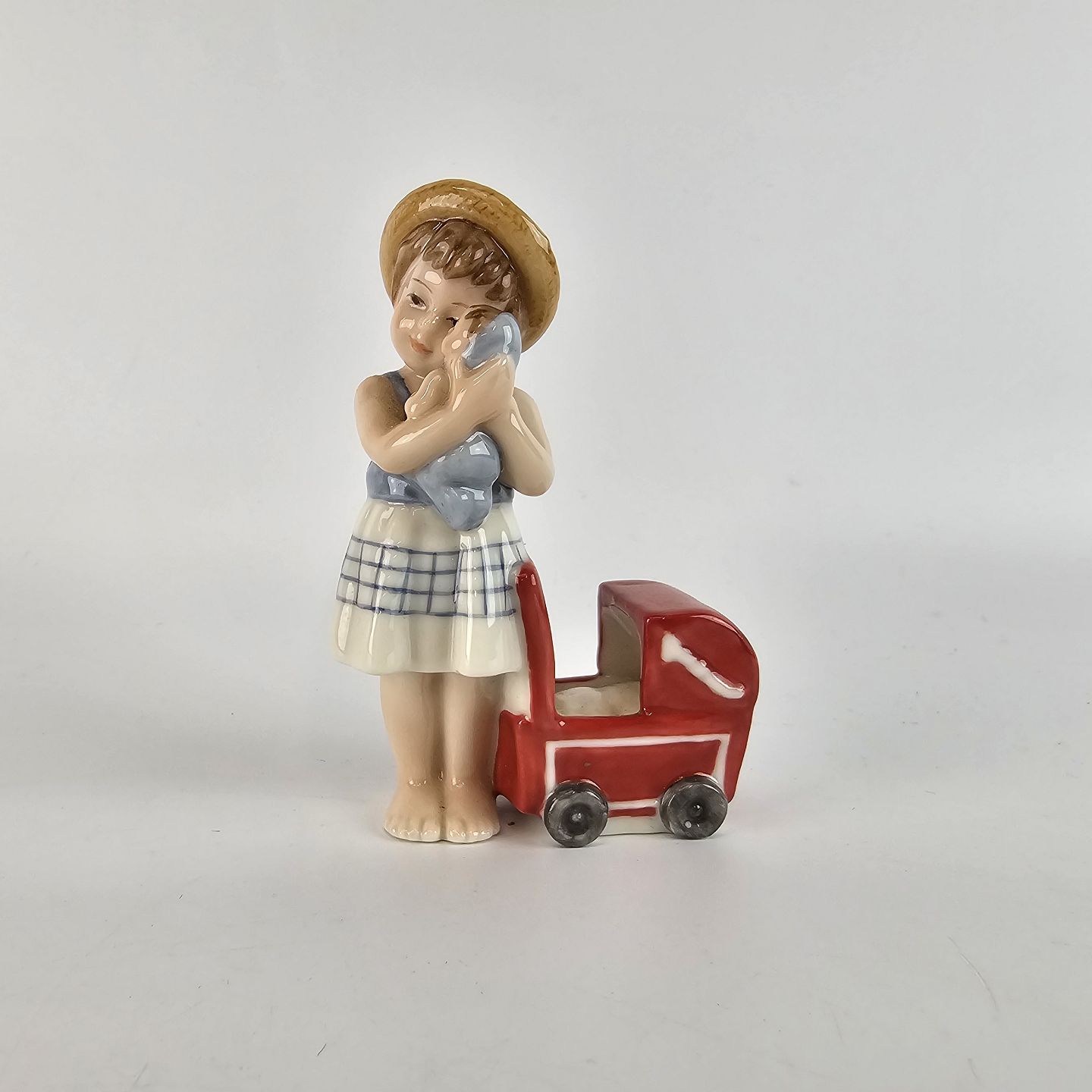 Figur af kgl. porcelæn formet som en pige med dukke og dukkevogn.