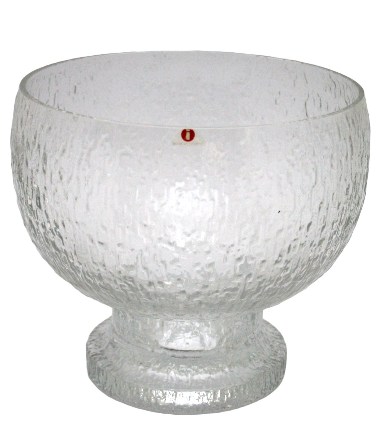 Iittala, Finland, Kekkerit, Stor frugtskål på fod. Designet af Timo Sarpaneva. Højde 17 cm. Øverste diameter 19 cm. Pris: 325 kr. stk. Lager: 1