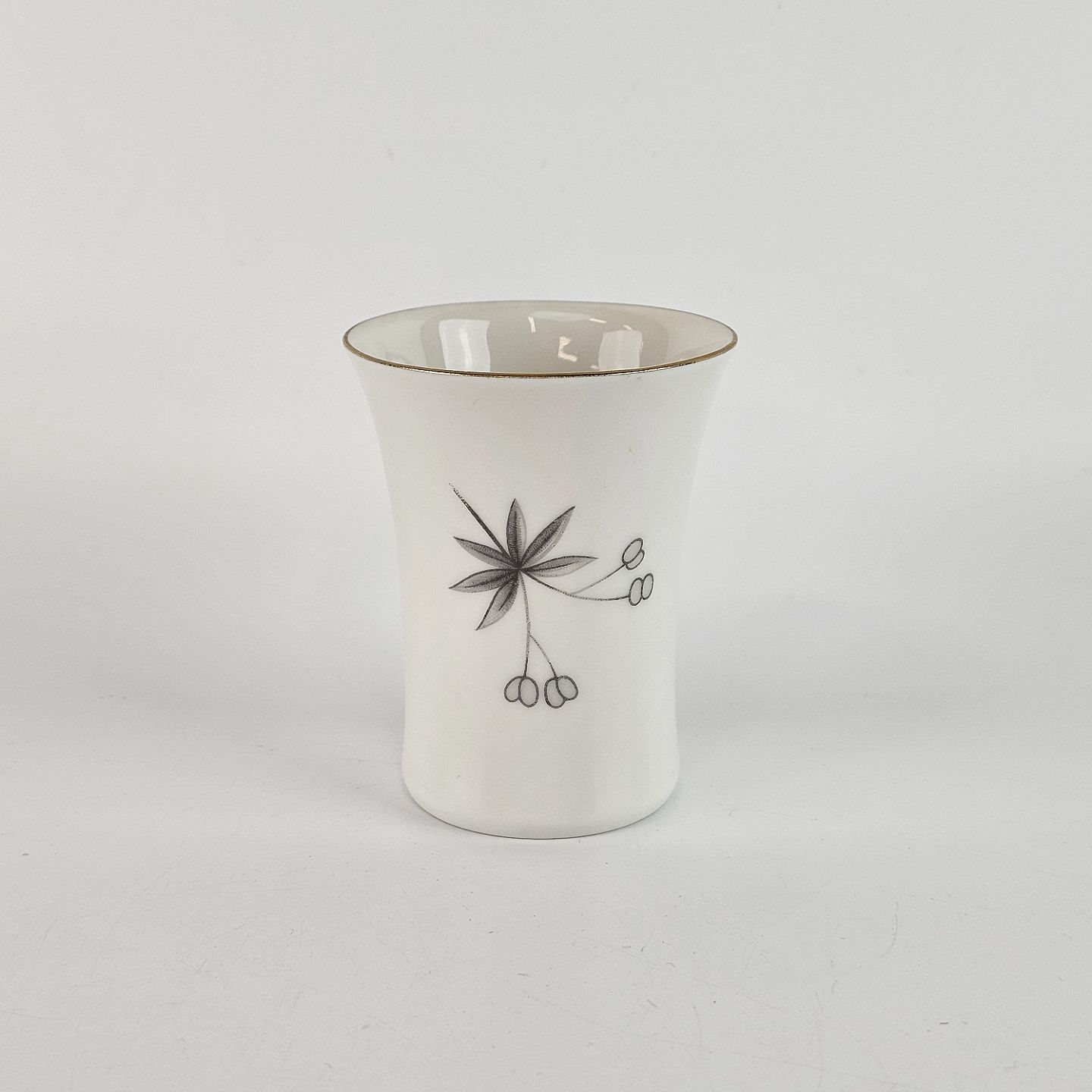 Stellet Henrik er af hvidt porcelæn dekoreret med grå burresnerre og guldkant. Mindre brugsspor kan forekomme