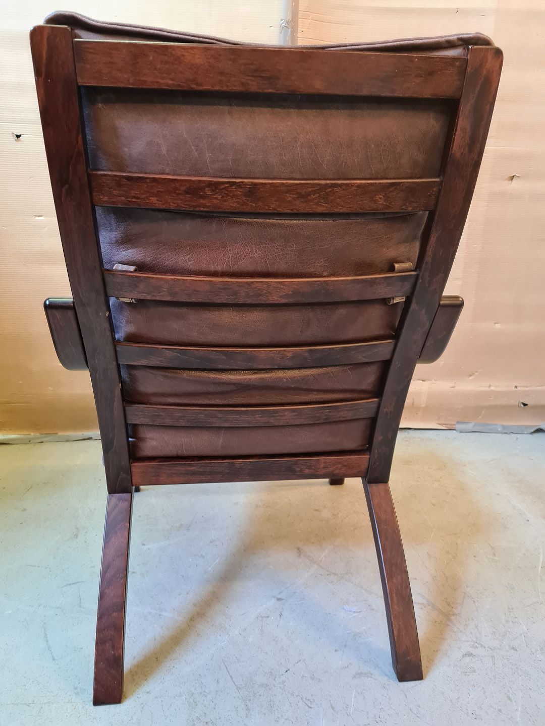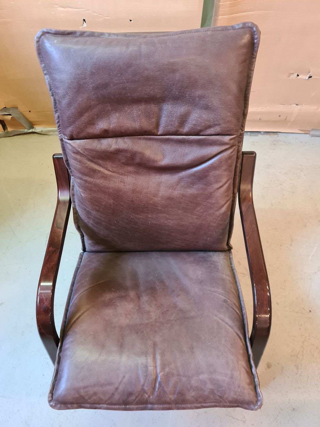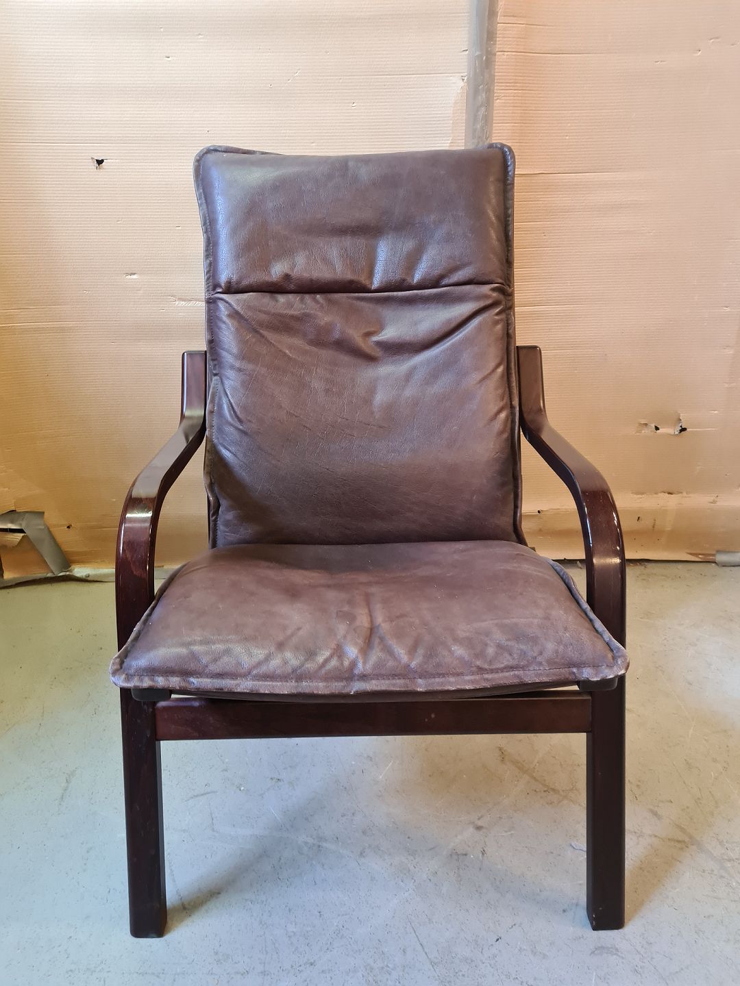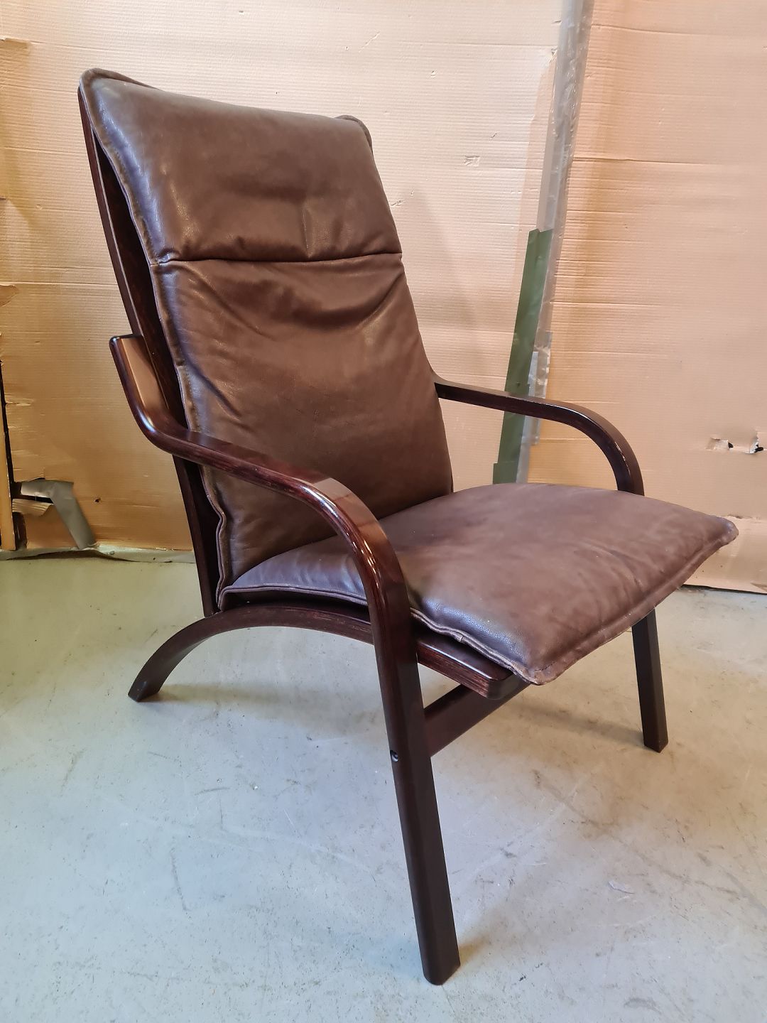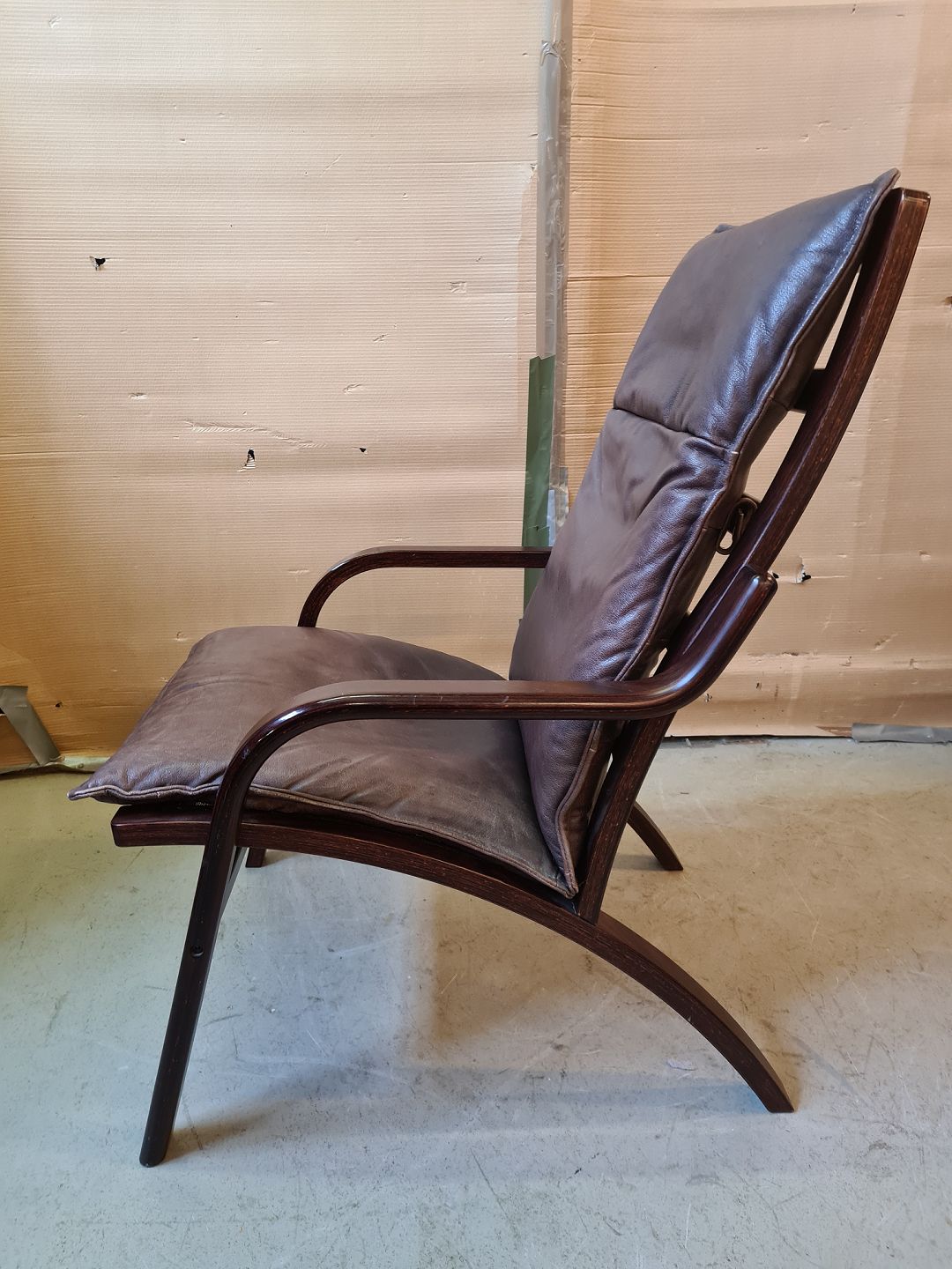 Lænestol i bejdset bøgetræ og læder, fra 1990erne.