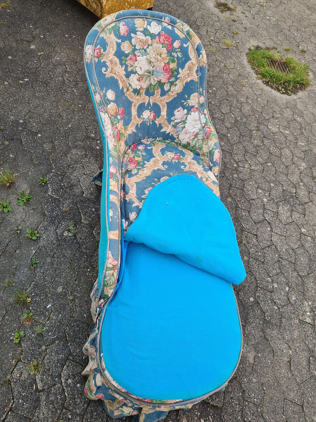 Betrækket er hjemmebetrukket og den har brugsspor.