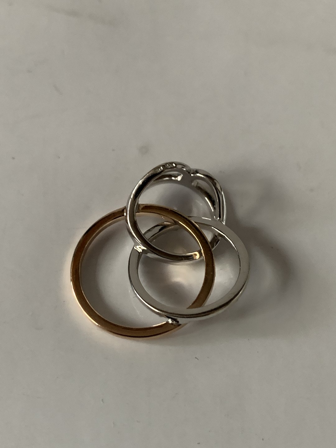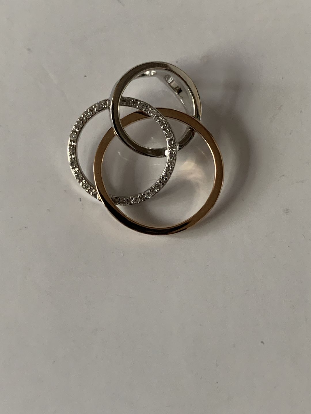 3 rings Pendants/Charms in 14 karat white yellow and red gold and diamonds