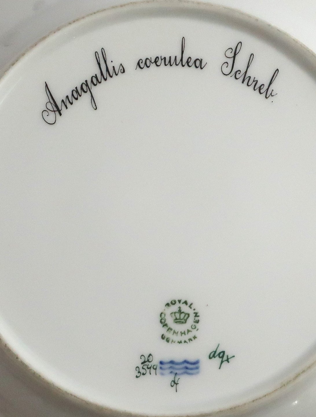Royal Copenhagen, Flora Danica. Middags tallerken. Design #3549. Diameter 25 cm. (1 sortering). Anagallis coerulea Schreb