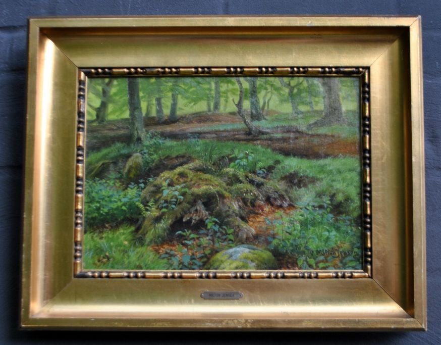 Milton Jensen, Carl (1855 - 1928) Denmark: Forest Floor. Oil on canvas. Signed: C Milton Jensen. H: 27 cm. W: 38 cm. Framed: H: 41 cm W: 52 cm.