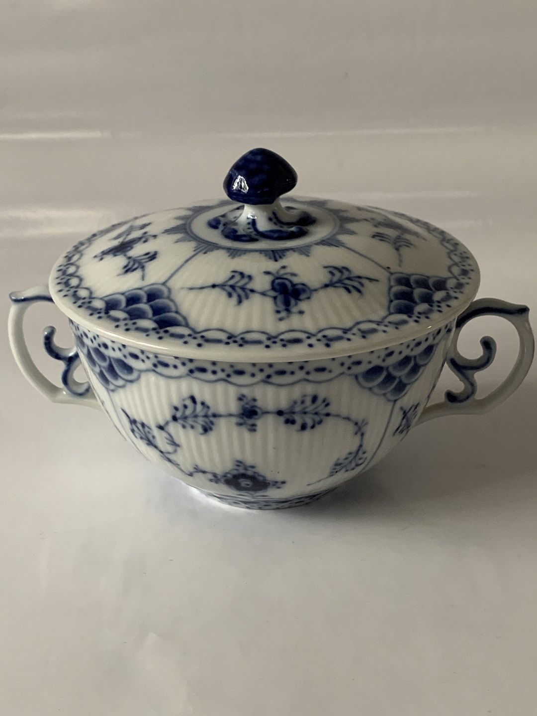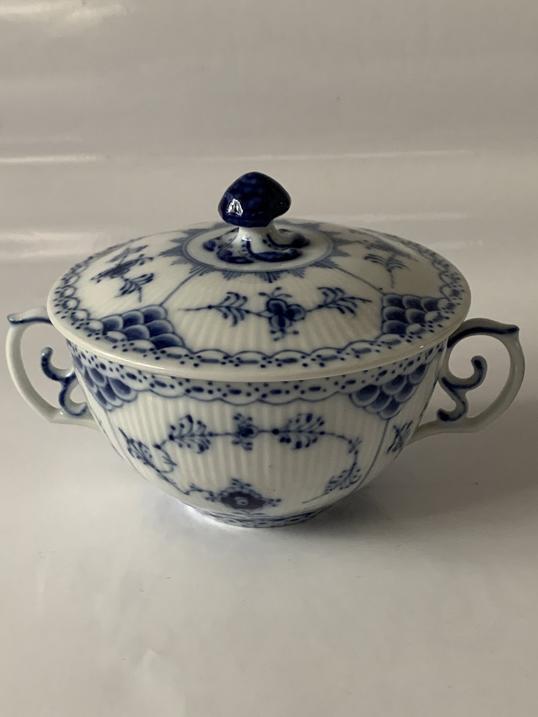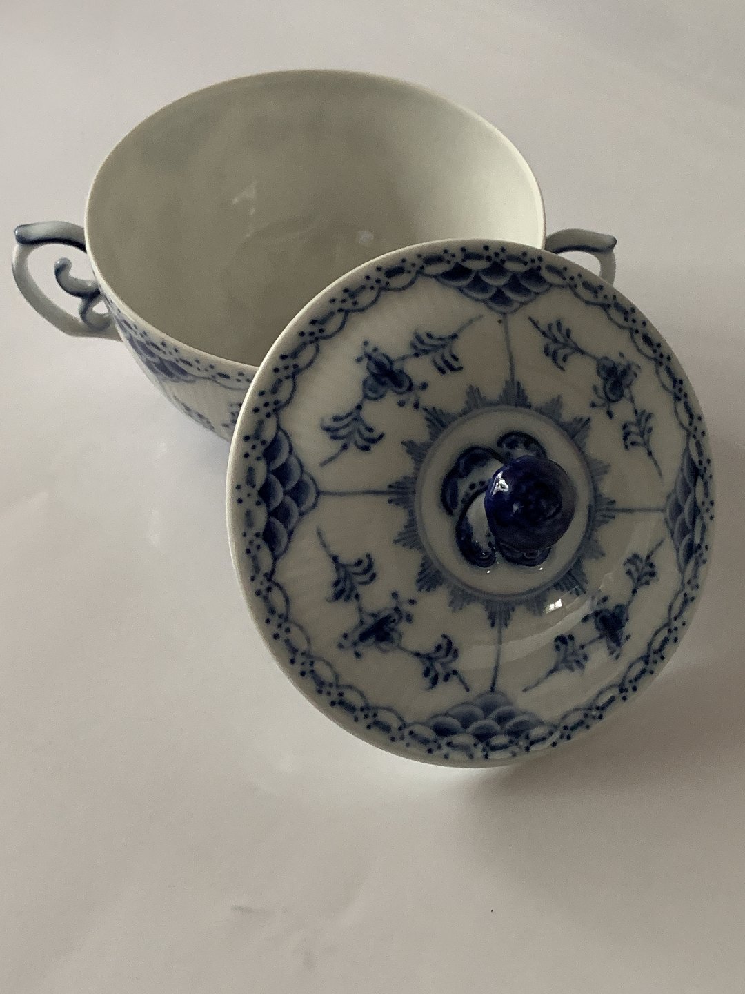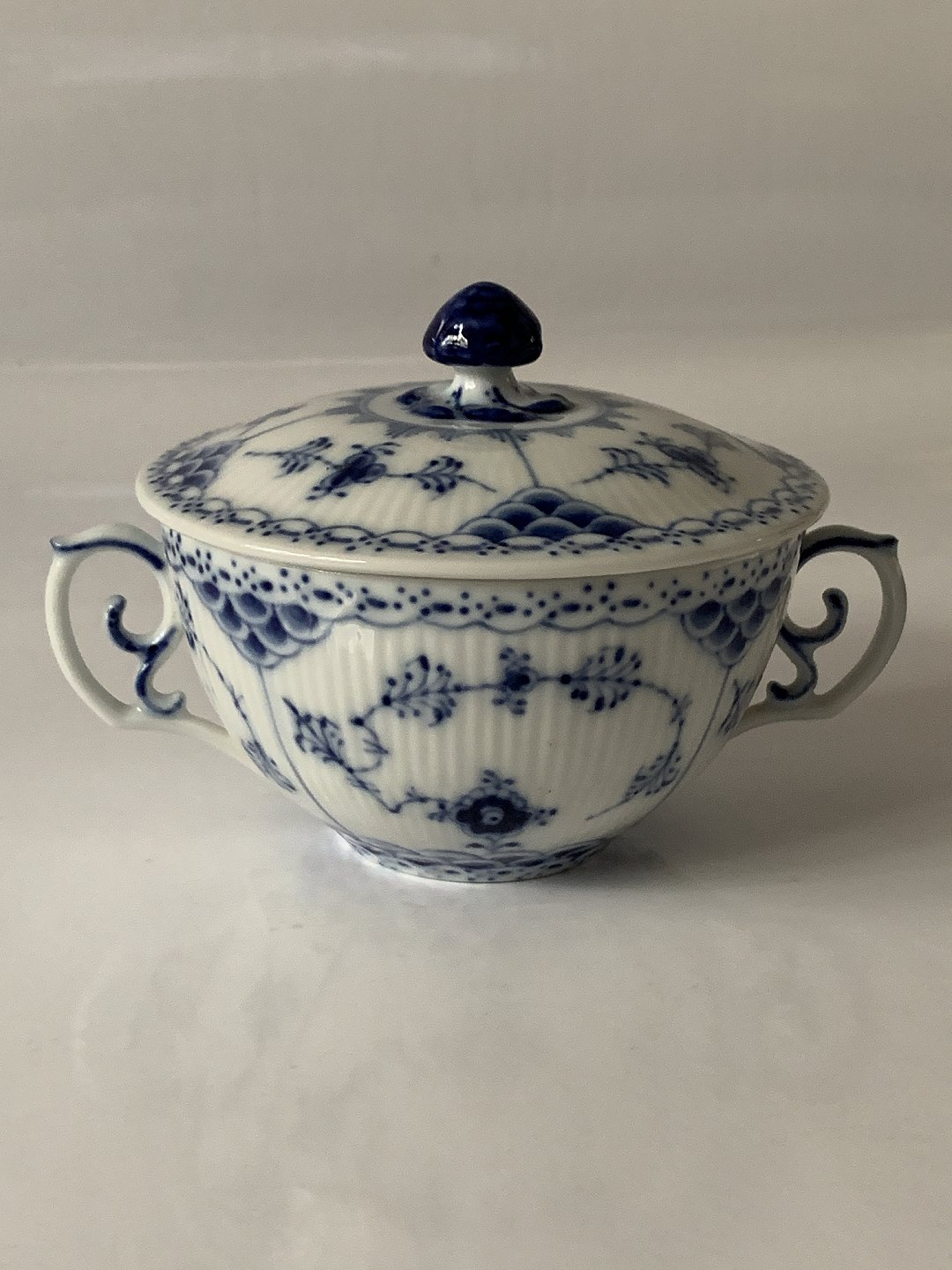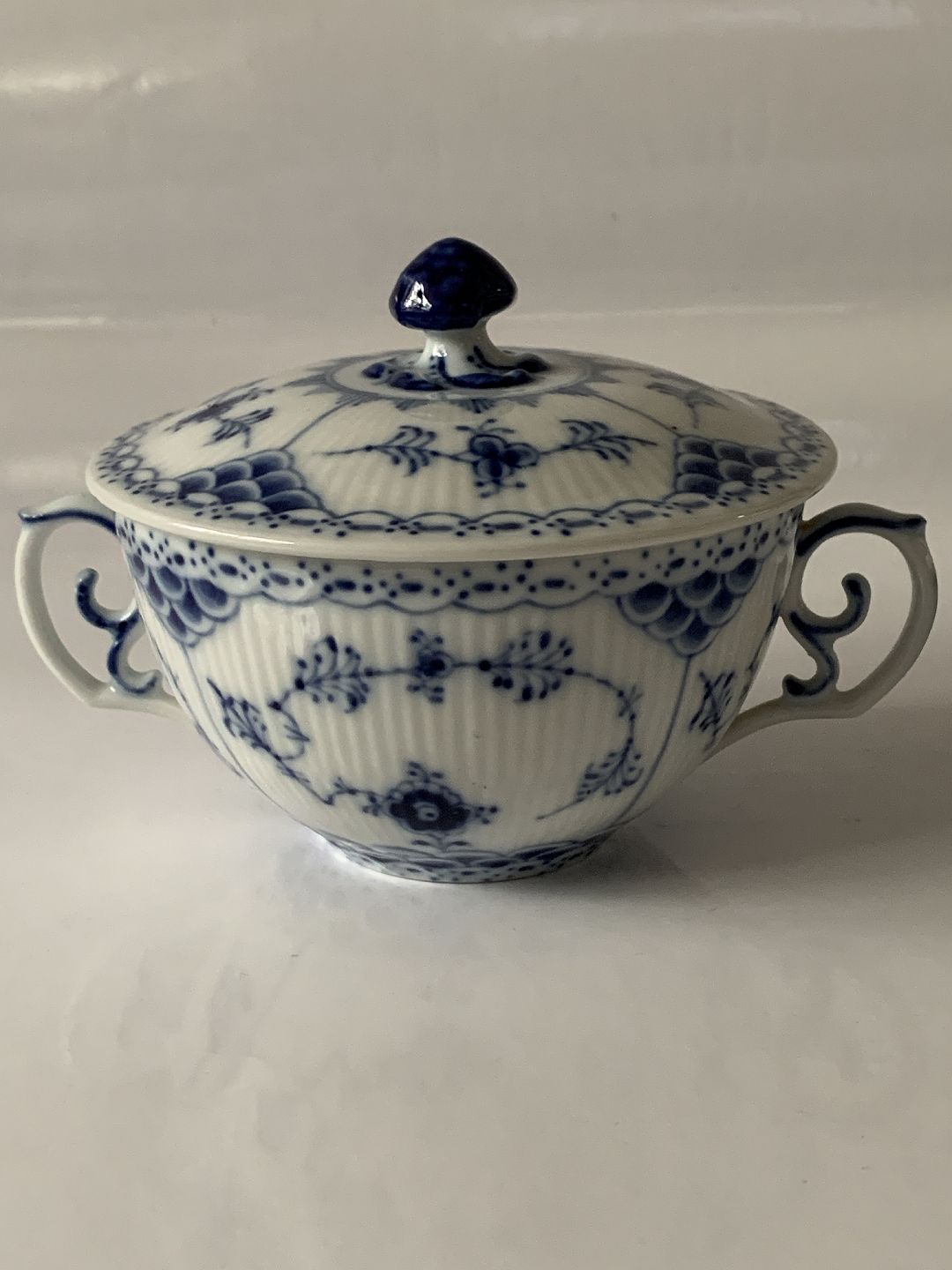 Royal Copenhagen Musselmalet helblonde, Bouillonkop med låg uden underkop