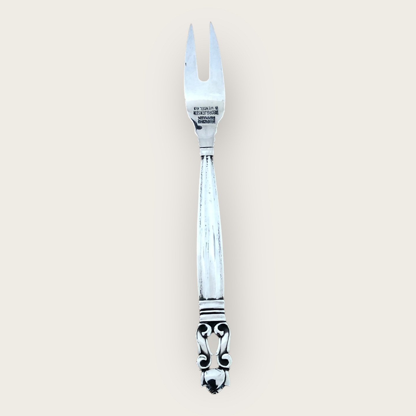Georg Jensen, Acorn / Konge, Small cold meat fork, Length 11.5cm, nice used condition.