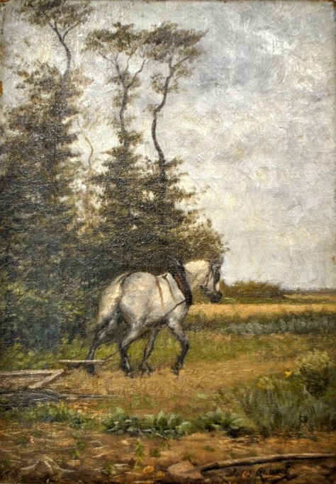 Quesnet, Jules Eugène (1815 - 1899) France: A work horse in the field.